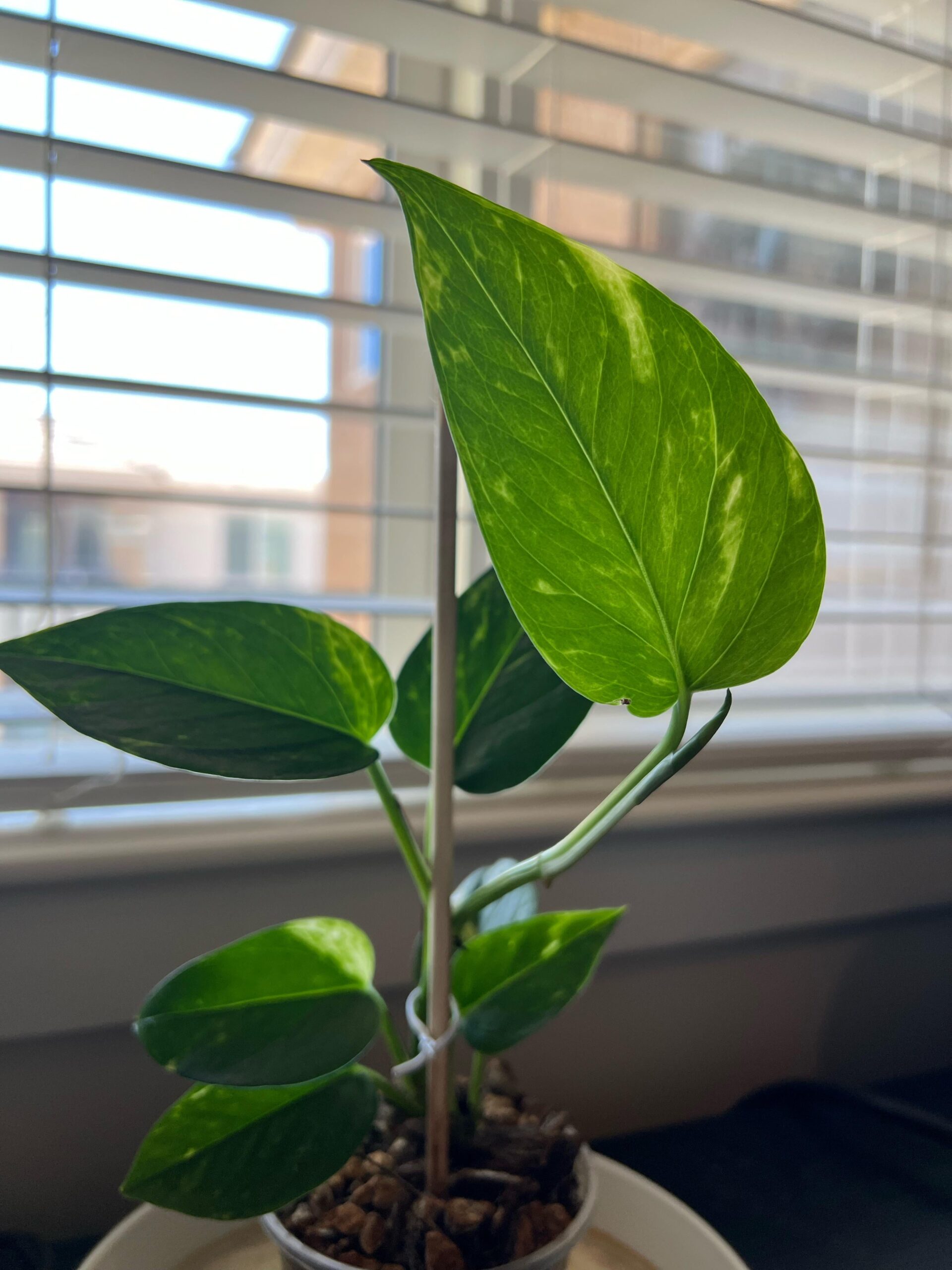 About a month ago I took my last bit of a pothos that didn’t survive a move out of water and plopped her in soil. She’s been doing really well! She’s got some new growth since repotting. The big leaf is new and obviously the one coming in is new. I’m just so glad she didn’t die off.