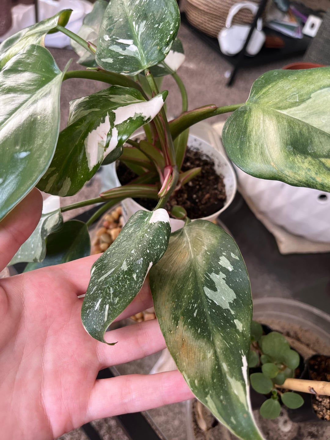 My Pink and White Princess Philodendrons 🤗 They sit near south facing window. They get morning sunshine if it’s out. Then sheer curtain light (bright indirect) rest of day. They are also under grow lights 12 hours on and 12 hours off for sleep.