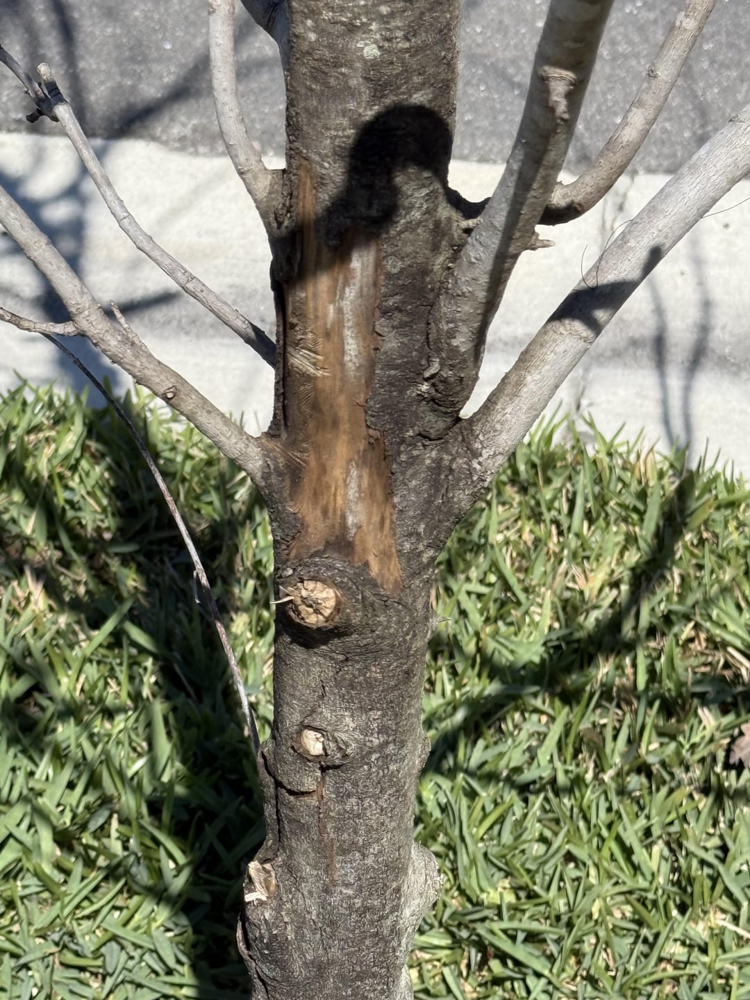 Is it just winter or is this Florida maple tree dead? I tried scraping the trunk but don’t see any green inside. Can I try some fertilizer to help it? by LengthinessOne8426 lawn care 10 Comments FozzyBear89 8 months ago “It has a vibrant core.” Dead-Yamcha 8 months ago Dead dead ImpressiveCap6891 8 months ago That is one dead tree. Numerous-Bee-4959 8 months ago Definitely Farpoint_Relay 8 months ago Looks pretty dead. xnmw 8 months ago Y’all ever hear of deciduous EastHillWill 8 months ago What about the tippy tip of the branches, the newest growth? Are those also crispy? Alone-Tackle-17 8 months ago Take a finger nail on the bendy branch and scrape a little bit of bark . If it’s green It still has life in it HarleyNurse61 8 months ago Looking kind dead. Lordsaxon73 8 months ago Probably was buried too deep and then overmuched, along with a side of girdled roots. Write A CommentYou must be logged in to post a comment.