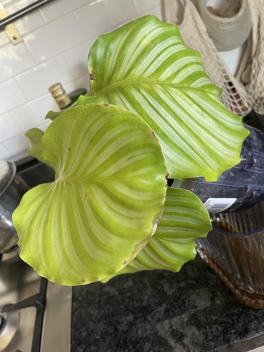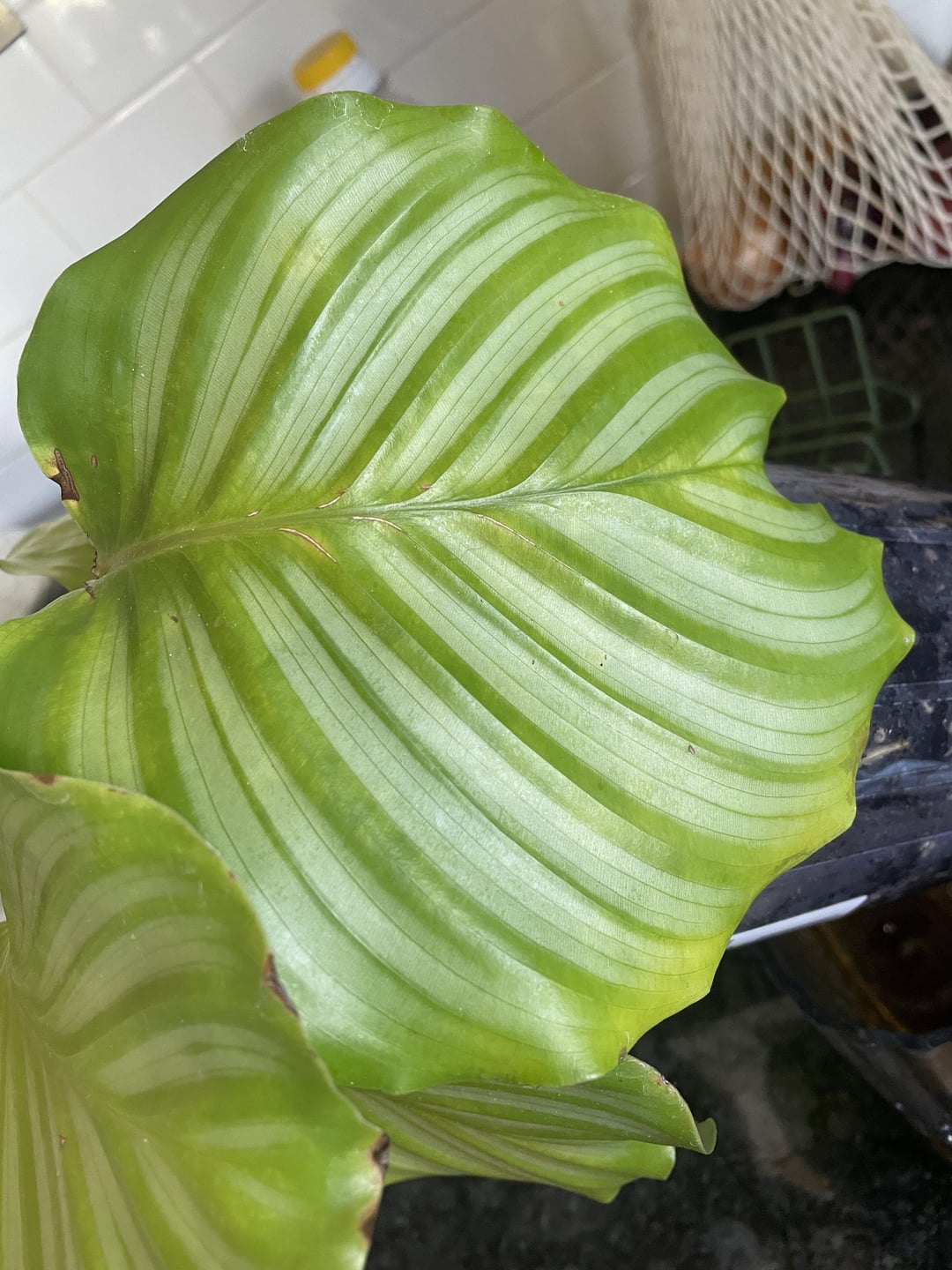 She gets plenty of light and we are end of summer here in aus, I only water her when her top soil dries out. And the water is always filtered as she is a calathea 🙄