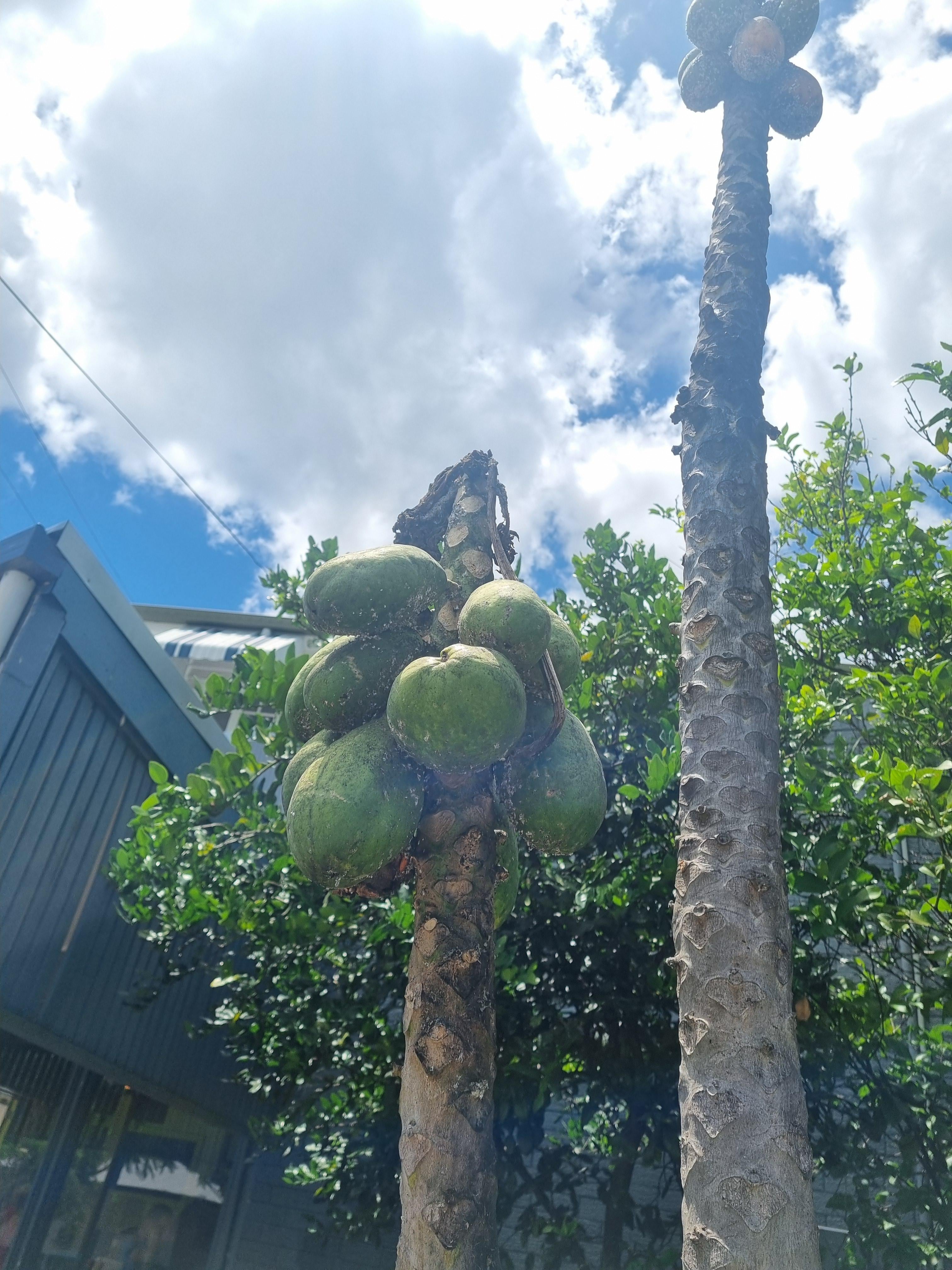 A sad papaya. They often look a bit miserable, but this one more so than most.