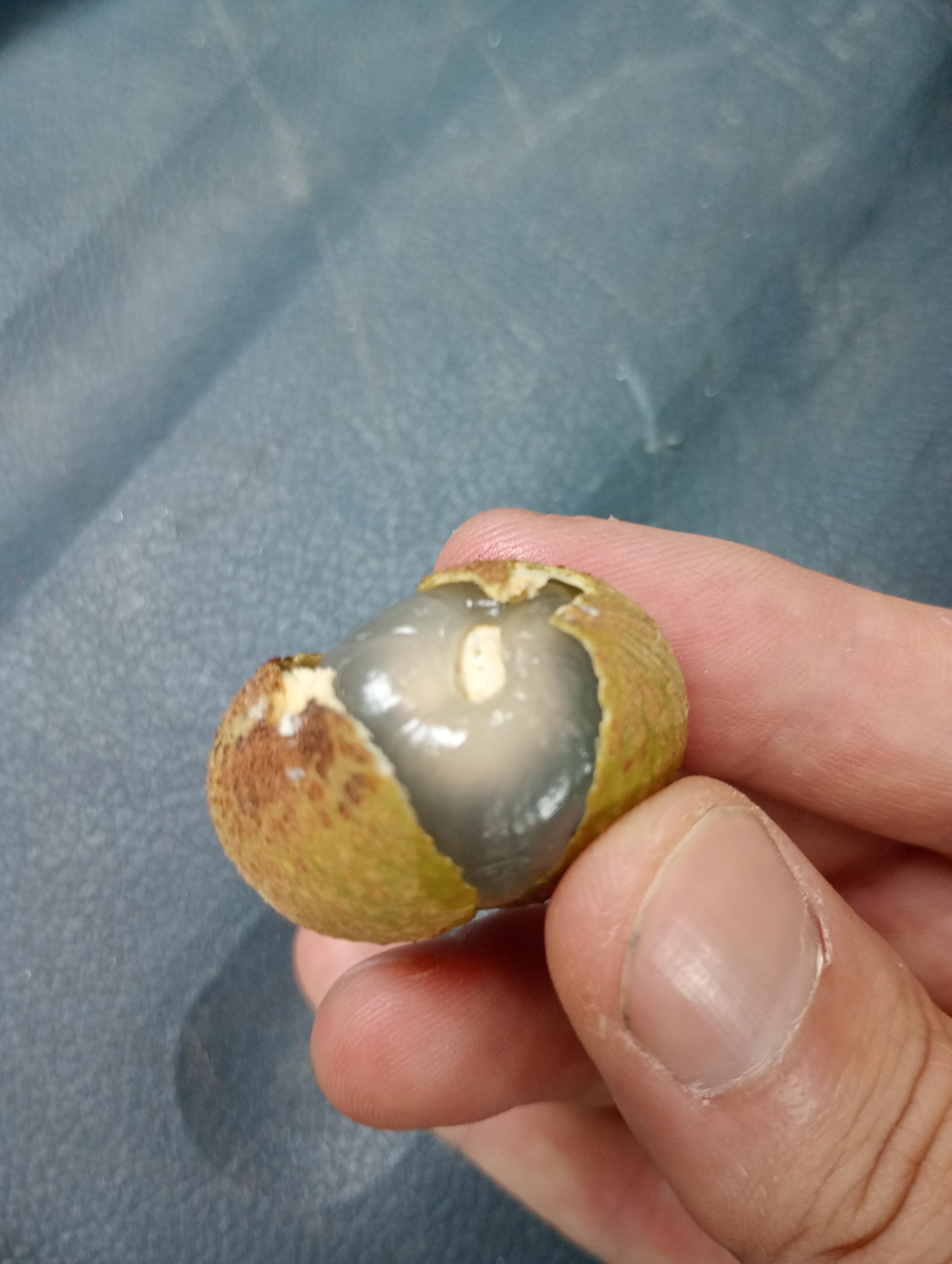 Gib_entertainment 8 months ago Looks like a lychee but they usually aren’t that translucent, also it’s a bit paler than what I’m used to. Maybe an unripe lychee?