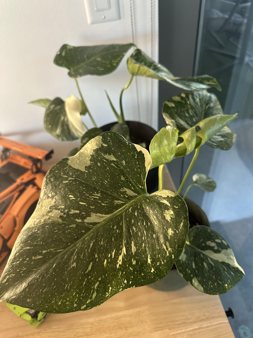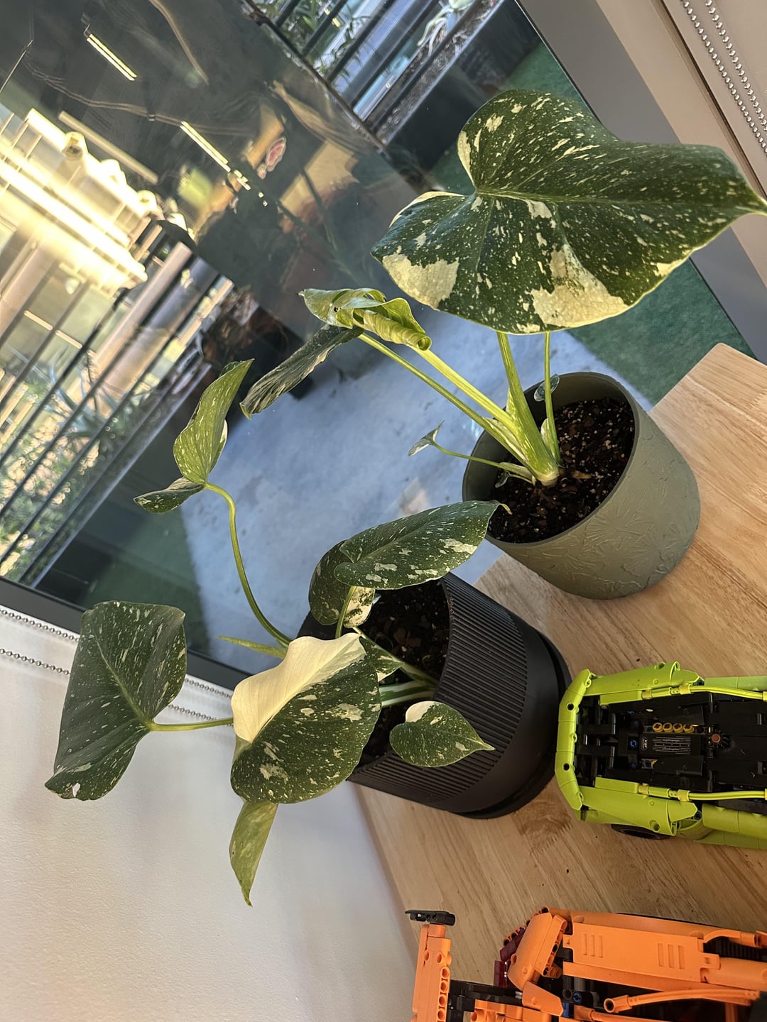 Later this evening, they’ll be headed into clear grow pots about 1-2” larger than their initial grow pots from Wally World (roots were coming out of the bottom and I had to cut a couple of pots to get them out safely. I will be adding a bit of LECA and horticultural charcoal to their mix just to ensure that they’re getting the drainage they need. Otherwise, 3 are enjoying a spot with loads of natural light coming from 2 walls (S & E facing) and the support of the residual from my Gardyn hydroponic system’s grow light! The other 3 are headed to an awesome spot that has resulted in very early inner fenestrations from one of my normal monsteras! We are in the desert, so everyone will be getting the benefits of humidifiers as well!