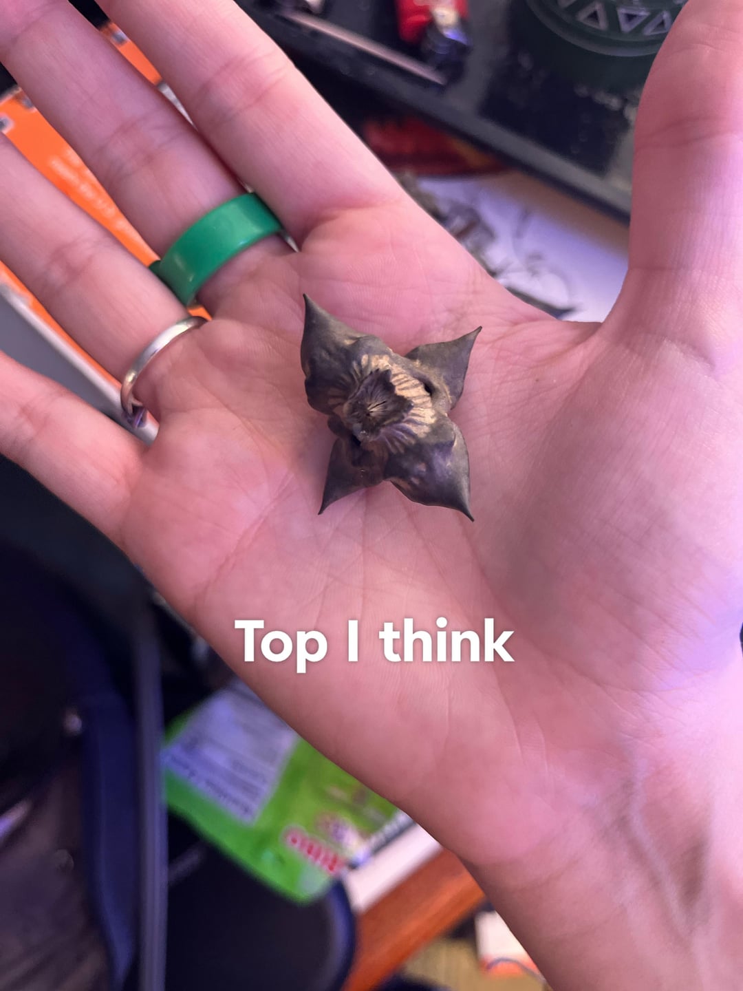 Water chestnut pods. Very hard and resemble the anti-troop caltrops. Currently invasive in the U.S. One of the many reasons I don’t like wading in muddy shallows.