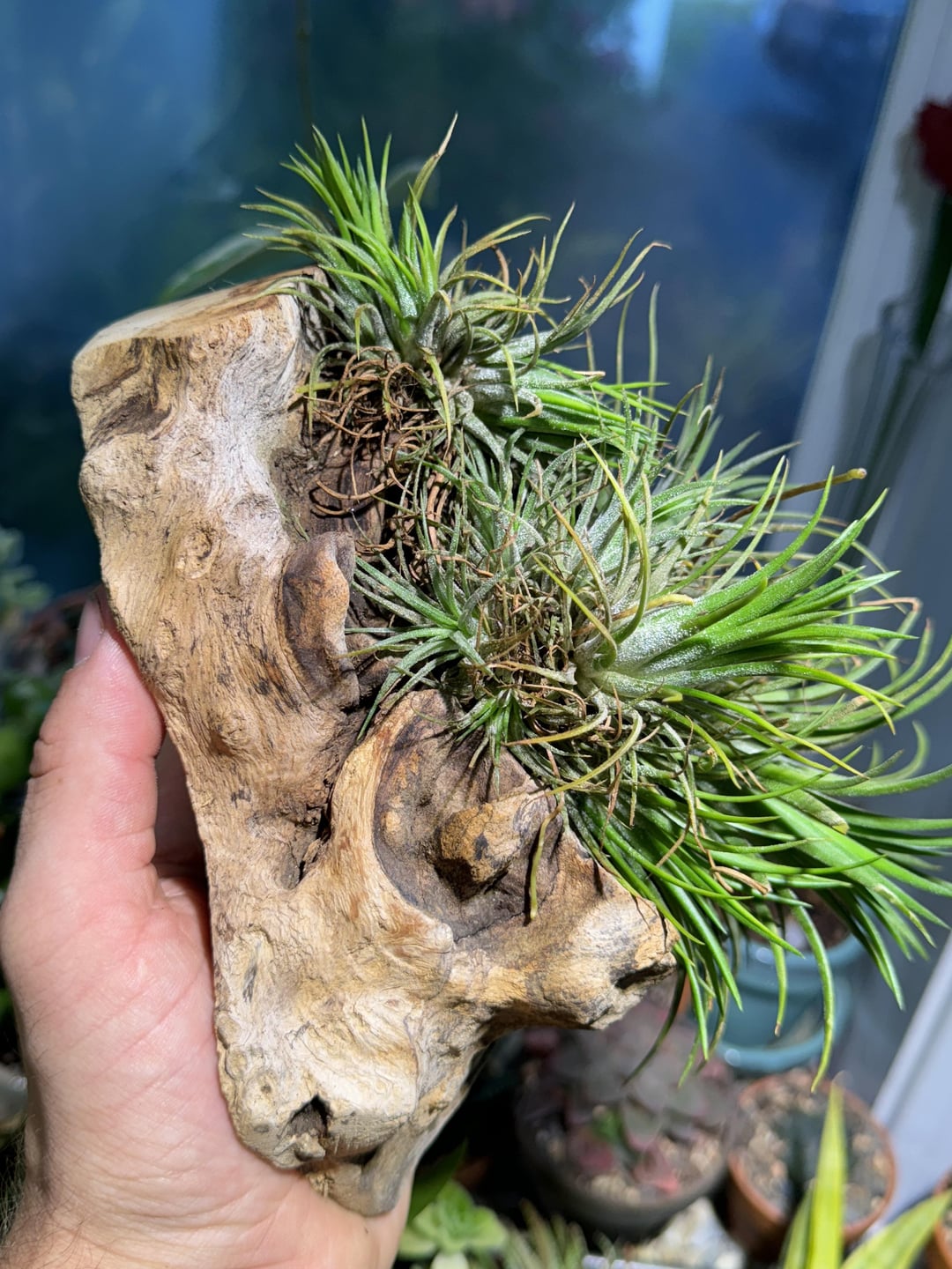 It may be hard to tell, but this is a cluster of three. I’ve included a couple pictures of the wood it’s now mounted itself to. Those were taken at the end of last August (8/24), and you can see just how much they’ve grown since then! Last pic (9/24) is a live root from this cluster