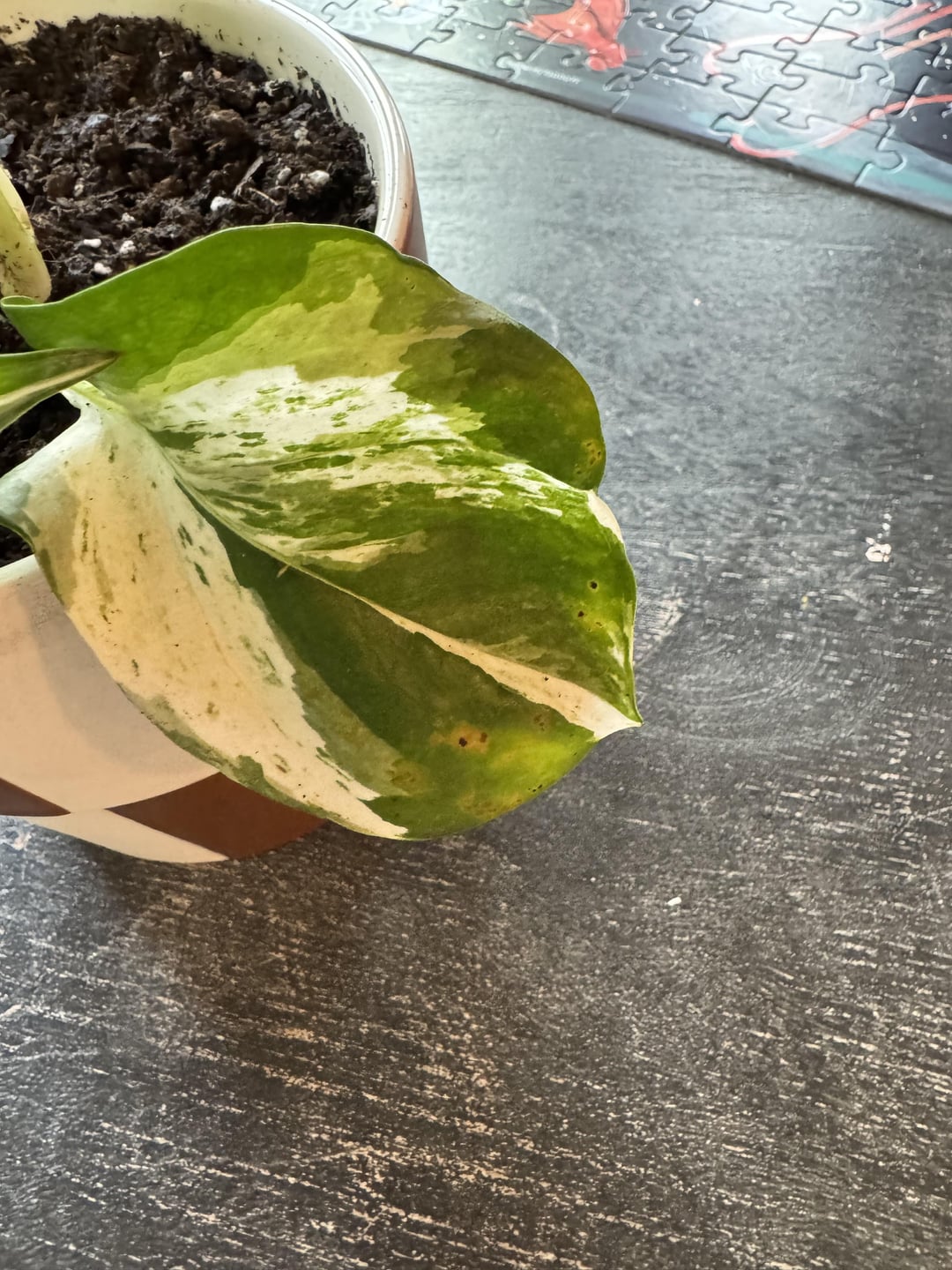 Brought this baby home about 6 days ago, I watered it for the first time today. Got it from a boujee plant store that potted it for me. Is the lack of watering why it has brown spots or is it getting burned by sunlight?