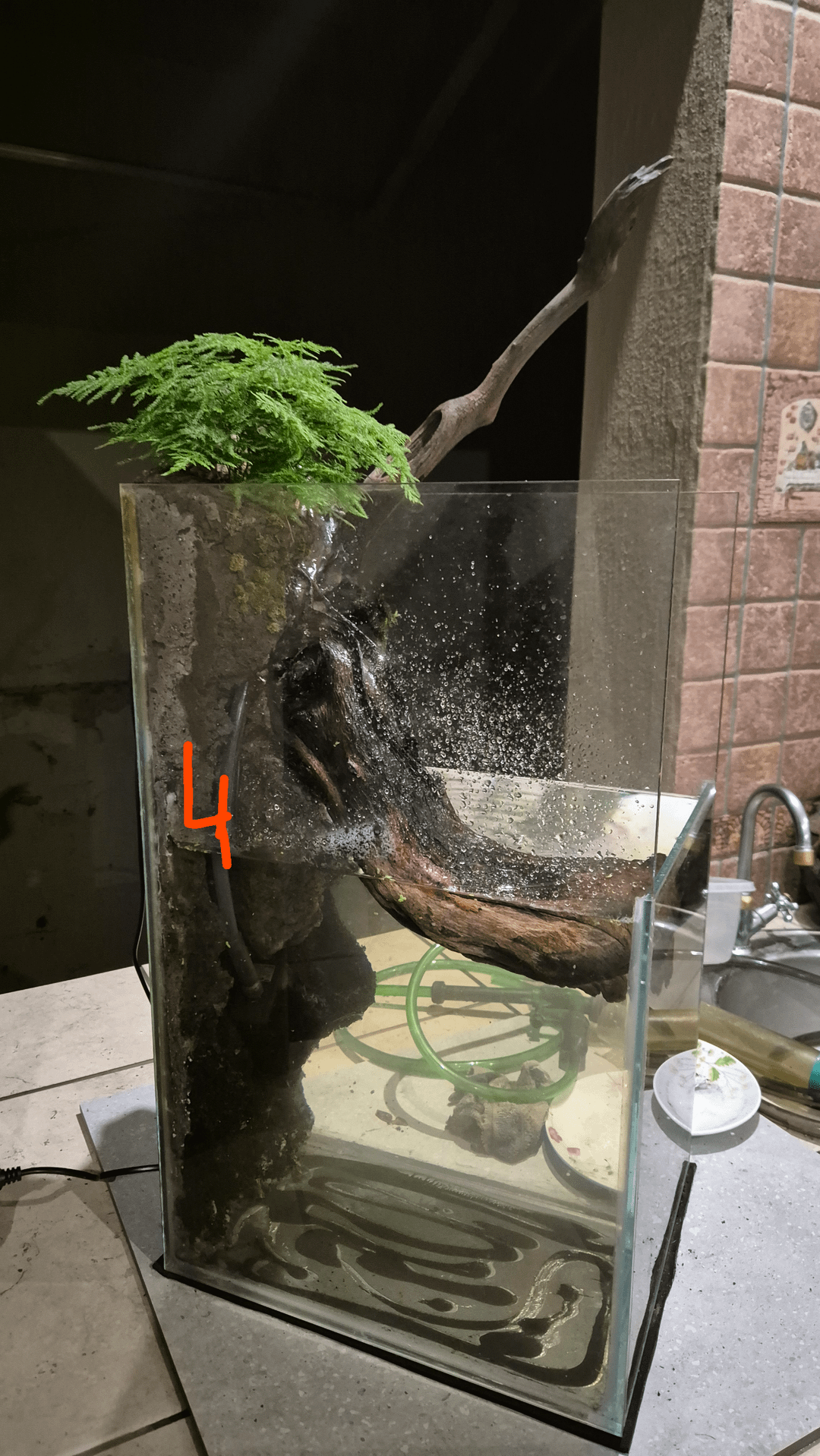 Converted a cracked fish tank into a vertical one with space for plants.