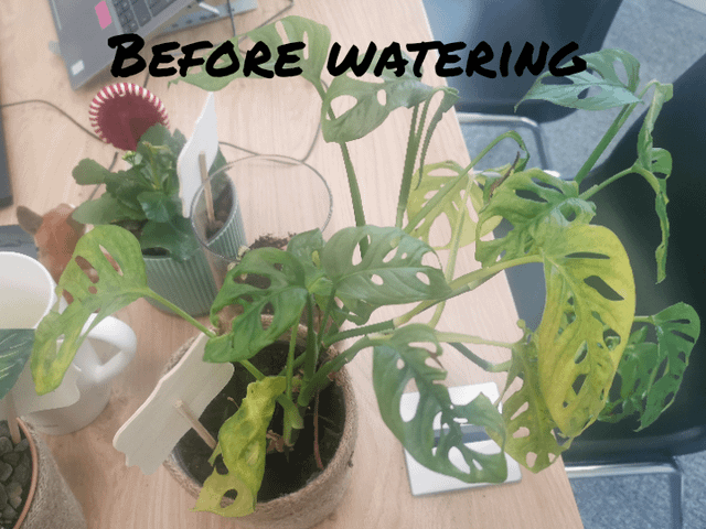 The next day, Albert had several yellow leaves as you can see in the picture. This has happened every time I watered him, but I thought it would be different this time as I had waited for the soil to dry.