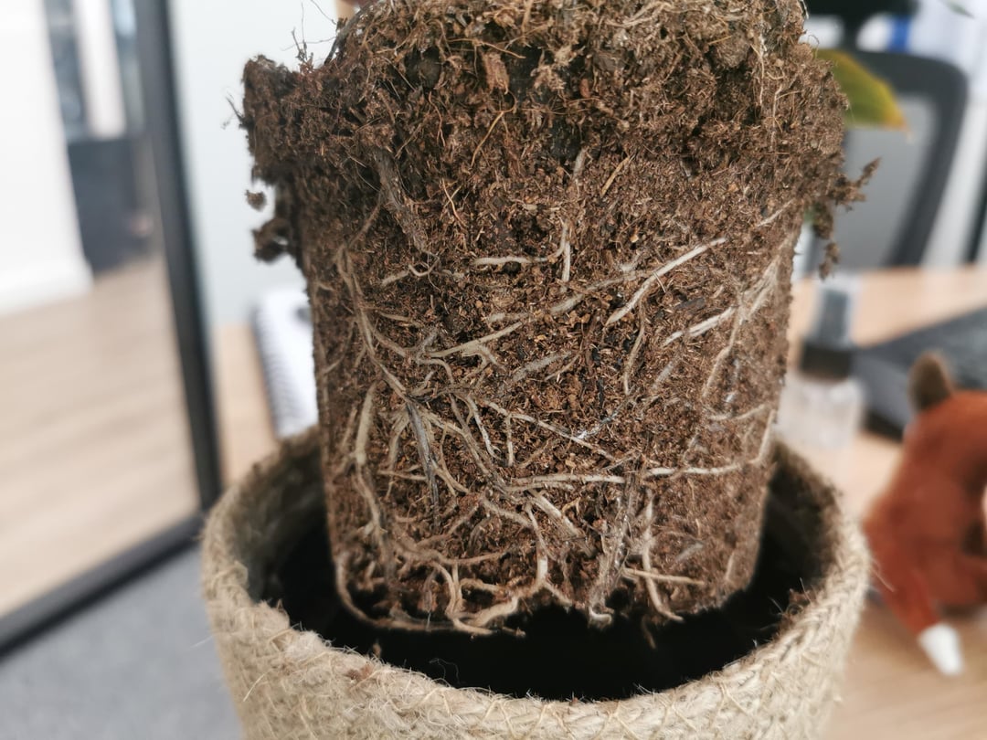 When I depotted him to check, I also noticed some of the roots seemed rotten (or at least flaccid and mushy).