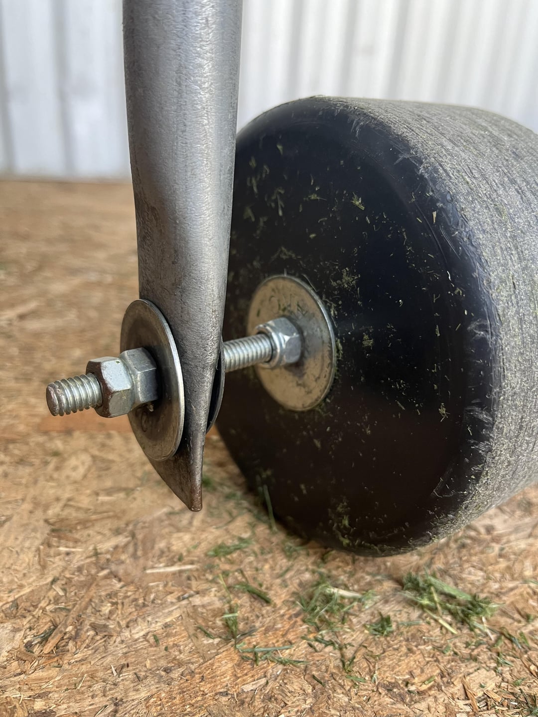1/2 in conduit bent and drilled for the roller axle.