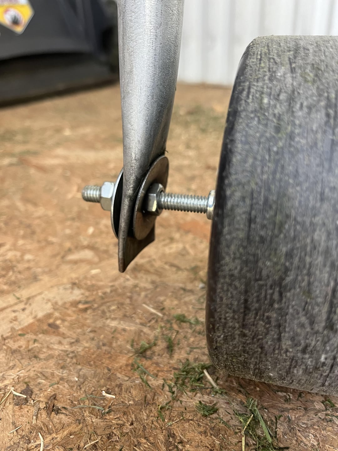 3inx28in pvc. Filled with playground sand. Drilled a hole in center of caps. Used a carriage bolt. (From inside cap moving out to handle is as follows. Carriage bolt head, cap, nylock nut, space two nuts for “jam nut” fender washer. Handle. Fender washer then two nuts in same jam nut fashion.