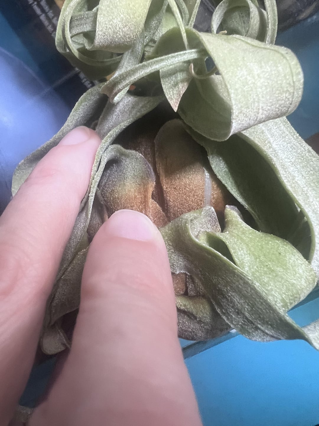 I know next to nothing about air plants, so I definitely need some guidance here. I ordered this guy through an Etsy shop with great reviews. The base and a good bit of the inside are very brown. The two pictures are from their listing pictures which shows zero browning on the inner part and a much less oddly shaped plant. The shop owner has assured me this is a completely normal healthy plant, but it seems so much more brown than anything I can find online. The leaves do seem to be well attached and not pulling away easily, so doesn’t seem to be rotted. It just doesn’t look like the shop pictures and honestly I’m kind of disappointed…