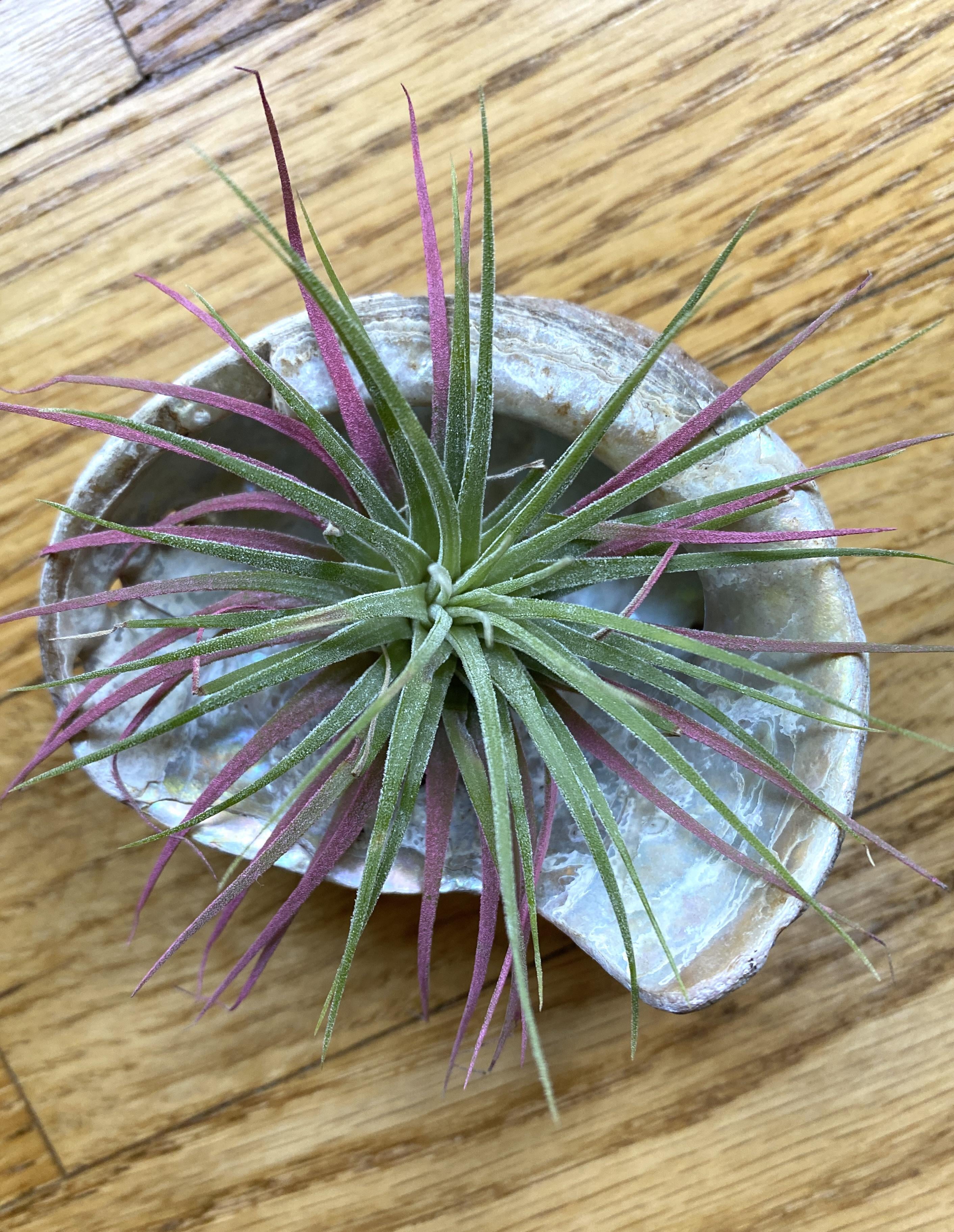 While some species can have a purple color to the leaves, the color shown in the photo is unnatural. Purples in airplants are generally more dark, like a maroon with brown undertones. This purple is almost magenta, and it’s unnatural for T. ionantha, which typically turns a pink color.