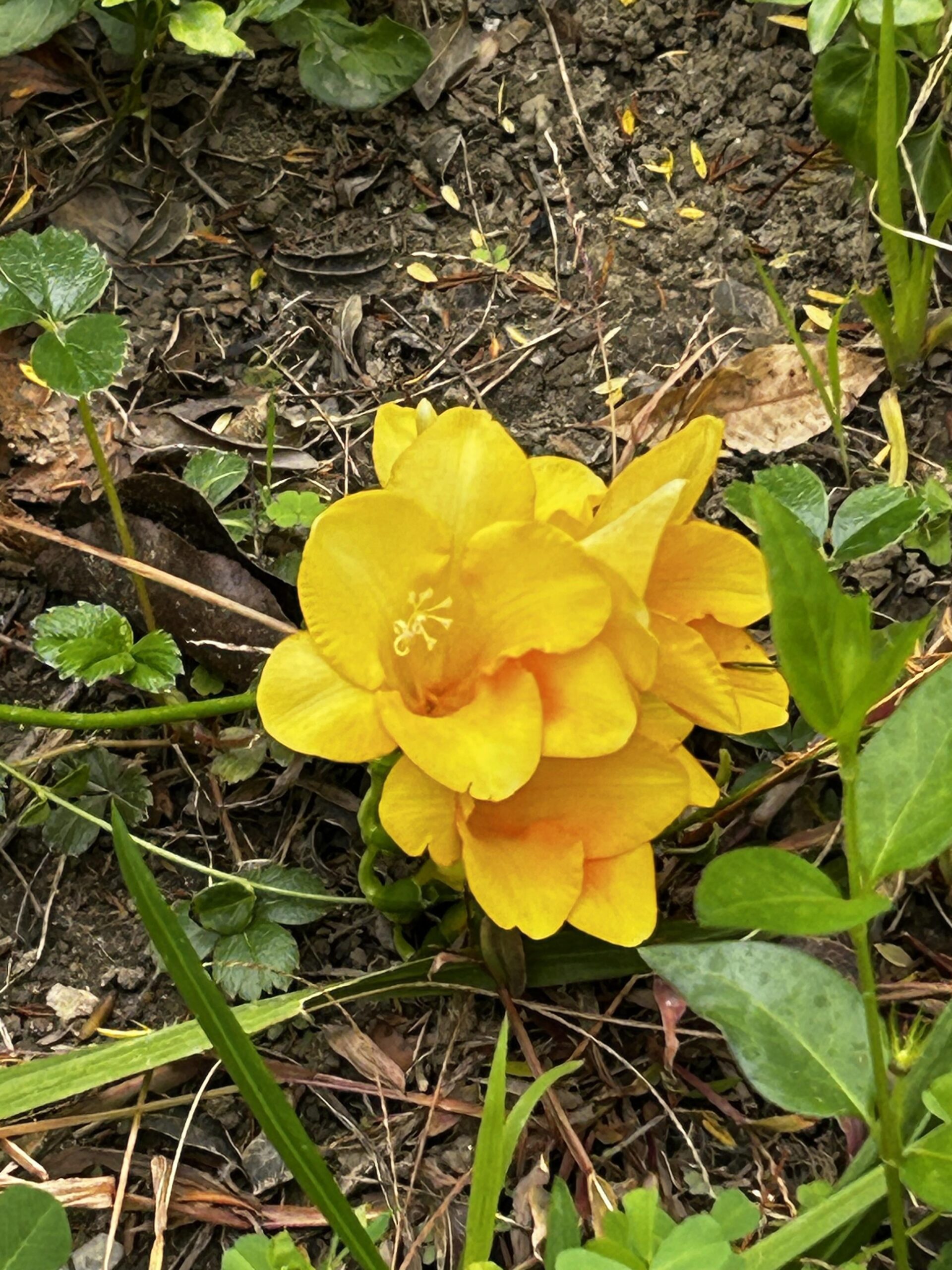 Freesia. If you follow the stem it’ll be attached to a fan of small leaf blades, like a mini iris