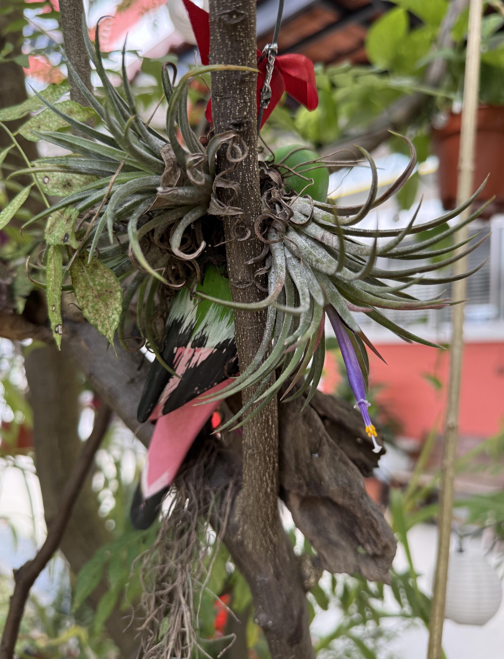 1. Not mine came across this on a walk. Couple of mounted ionanthas with some Spanish moss in the background. From the other side, the ionanthas look like the bird’s “wings”. Surprised the flowering ionantha isn’t blushing since this is a outdoors spot that does get quite a bit of sun