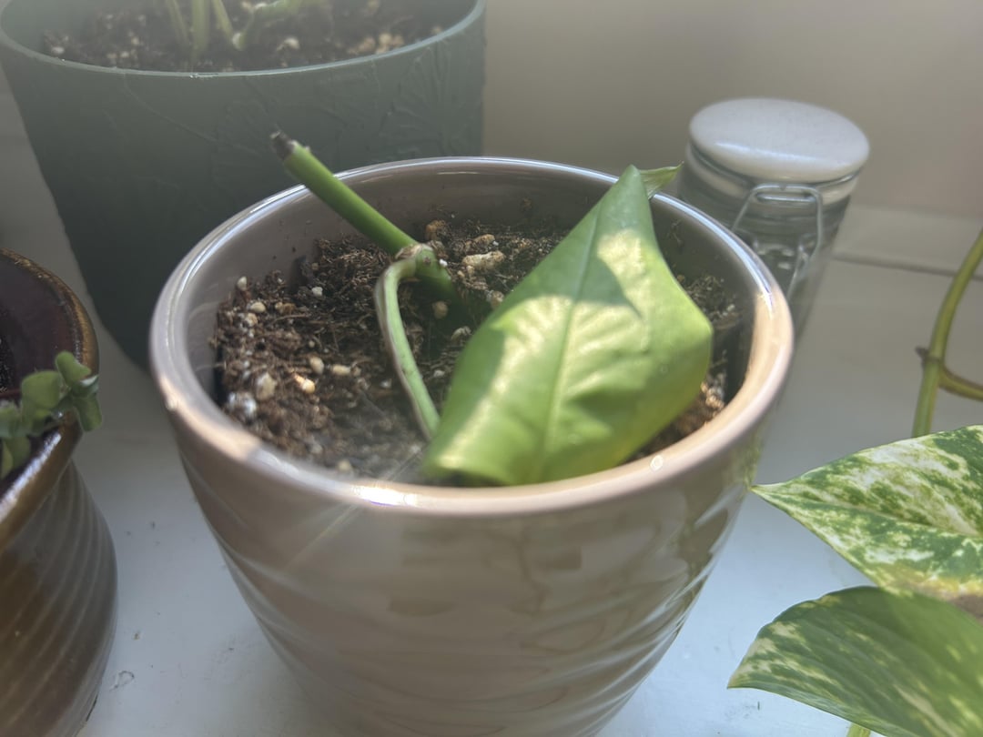 I potted this clipping that I was propagating a little less than a month ago and it hasn’t perked up or grown at all. Should I just clip off that leafless stem or should I continue propagating? I’d appreciate any insight! 🫶 by Averie37 pothos 5 Comments Excellent_Fail9908 8 months ago So this guy is not in the soil but I would toss him in water and gain some roots first. lirynnn 8 months ago If it’s been in soil that long and hasn’t done anything other than look sad, I’d pop it back in water and leave it there until the roots have roots perfectdrug659 8 months ago Put back into water, did it have roots when you stuck it in dirt? I’m also confused about what part you stuck in the soil, was there a node on it? For more help I’d suggest digging it out and posting a picture of the full cutting. StayLuckyRen 8 months ago Cutting. Cutting are for propagation. Clippings are trash from pruning (like grass clippings). wickedhare 8 months ago I would put that little guy in water or a much chunkier soil Write A CommentYou must be logged in to post a comment.