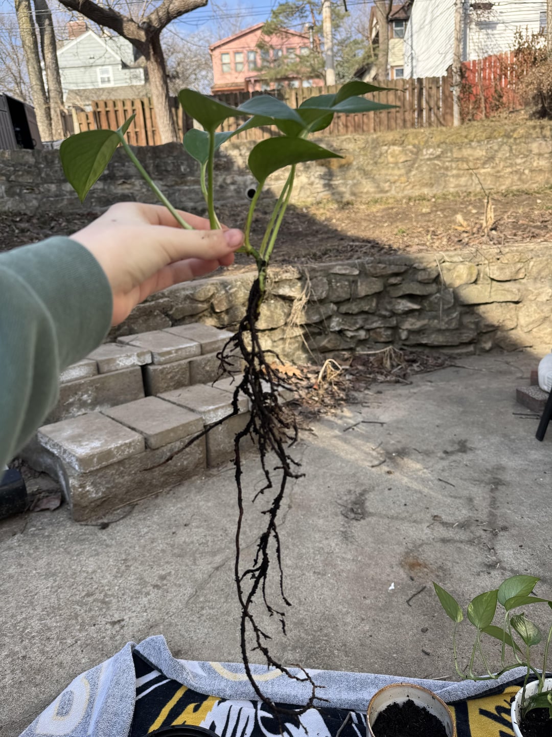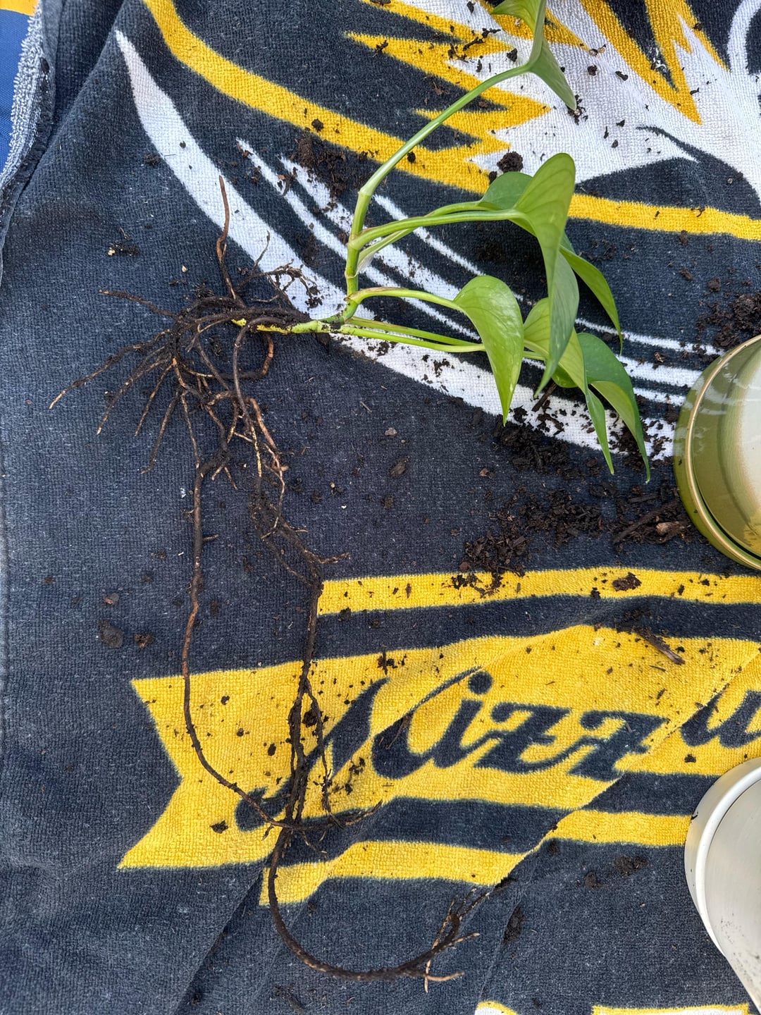 I propagated this pothos from my mom’s main plant last summer and it has grown more leaves but now I am repotting it and noticed how long these roots are. Would it benefit from being trimmed or is it okay to leave them? Thanks!