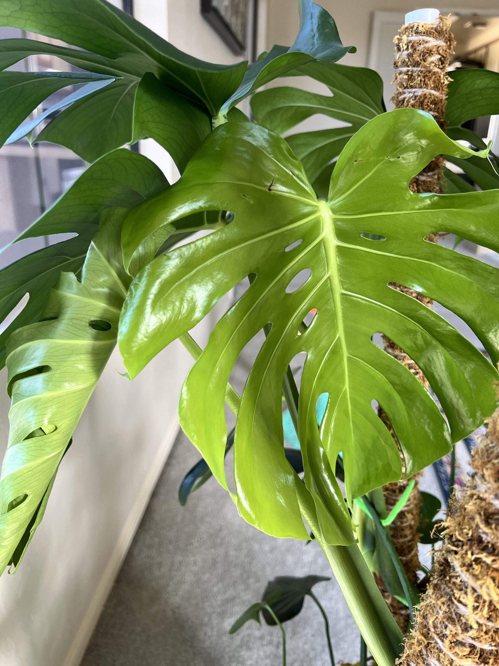 Bought this monstera on a hardware store trip whim 8 months ago, never thought I’d see the day of it creating inner fenestrations! So proud of myself for not killing it. Second monstera in the pot (came that way) is just starting unfurling a new leaf that also has an inner fenestration! West window with south exposure during the winter worked!