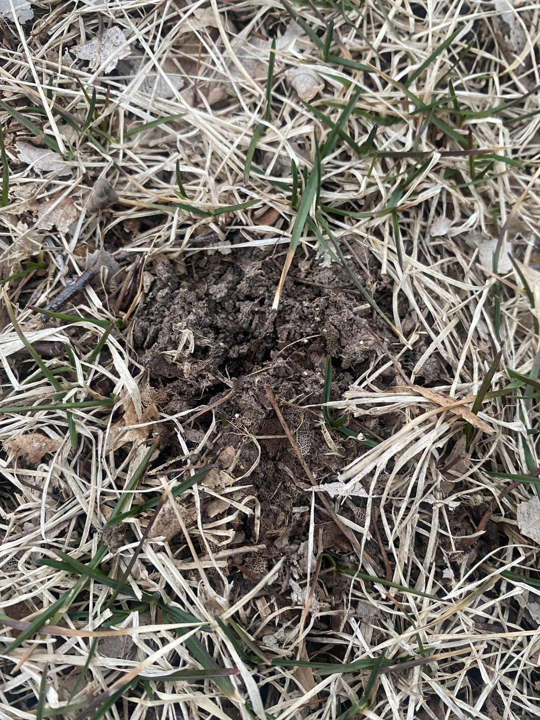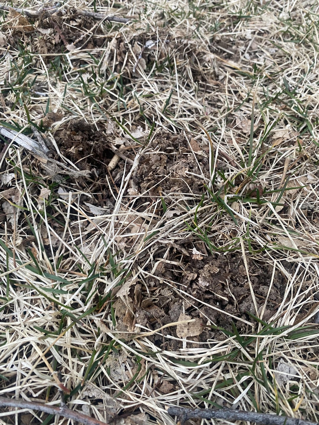 We have had this area under a linden tree that just cannot keep grass alive. At first I thought maybe because it is deeply shaded in the summer, and planned on getting some shade-loving grass seed from zamzows. I was picking up the dog dookies today and noticed these weird raised areas in the grass and dirt under the tree. Images included. Can anyone tell me what might be causing this?