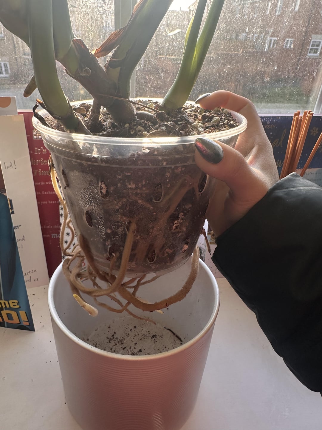 Edit: maybe think about getting a wooden stick/moss pole or something similar to help your monstera climb 🙂