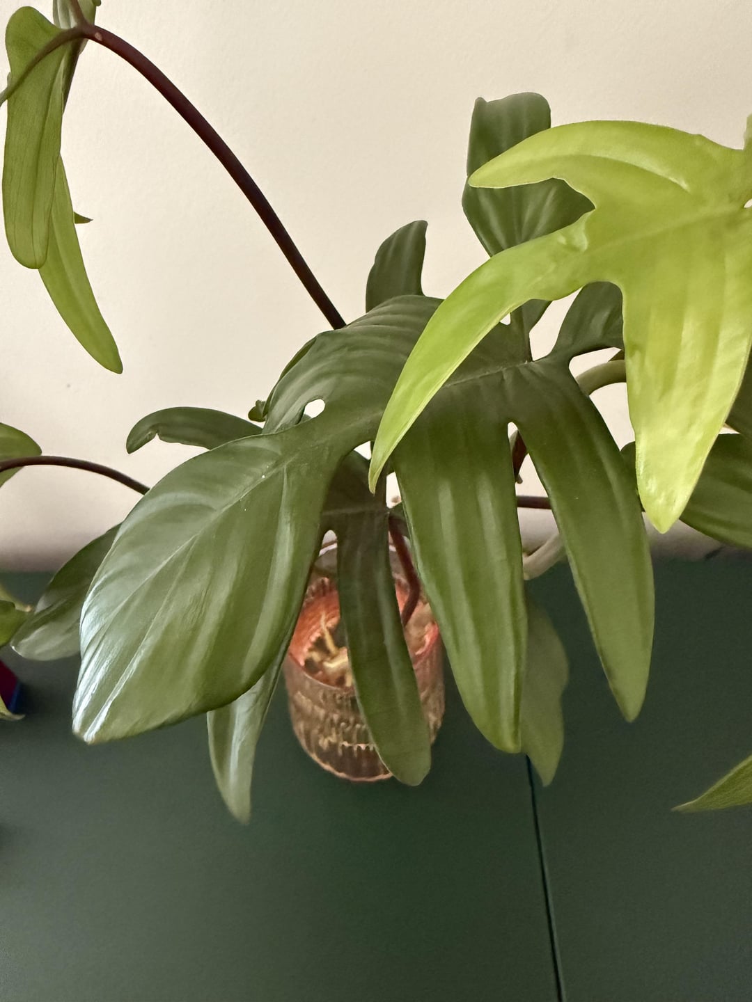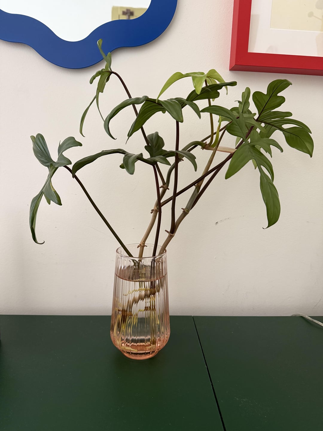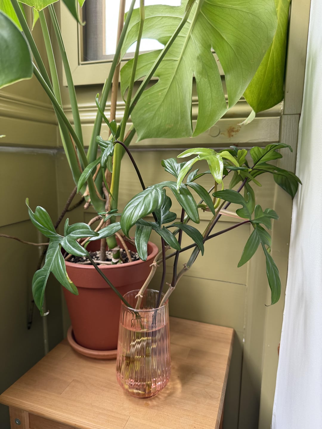 I’ve been given these philodendron cuttings by a colleague, and I rooted them in water, first at the office then I moved them home so they’d get more light.