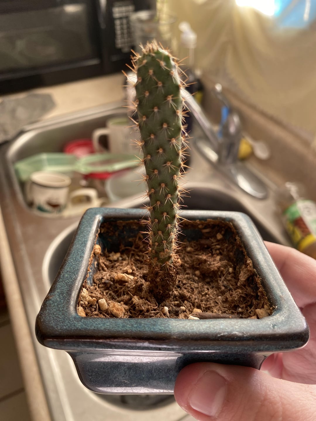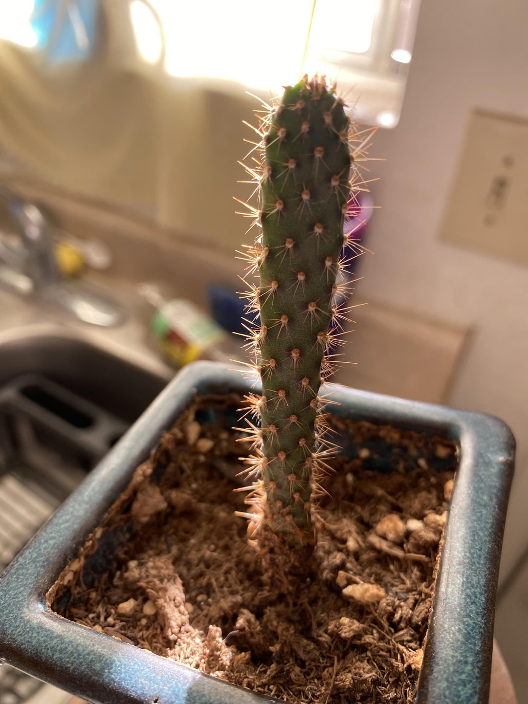 I have several plants and cacti but found this little guy growing in my yard in isolated corner away from all my other plants this past Fall (2024) and I’m pretty sure he isn’t one of my existing ones. To make clear, I currently have Blue torch cactus (2), Mammillaria Hernandezii (1), Red Lady Slipper (1), Elephant Bush (16), Lithops hybrid (1), Peruvian Apple Cactus (2), and Aji Dulce (43) seedlings that are about 6 weeks old and a miniature rose that I care for. I live in Arizona in Zone 9A-9b.