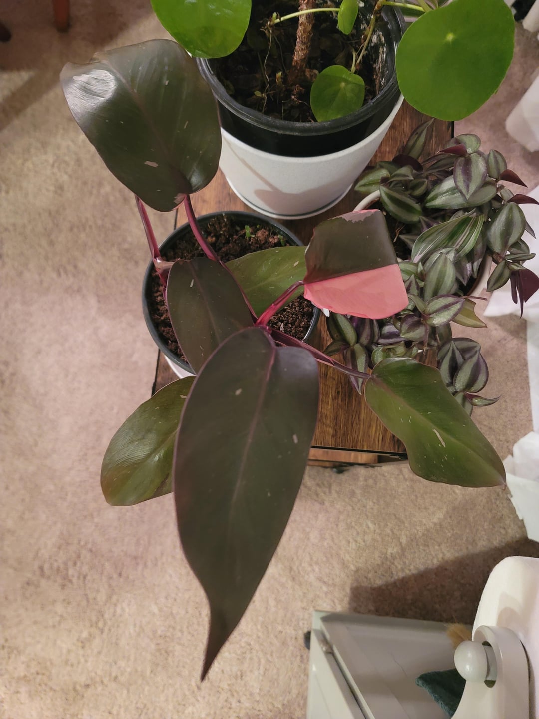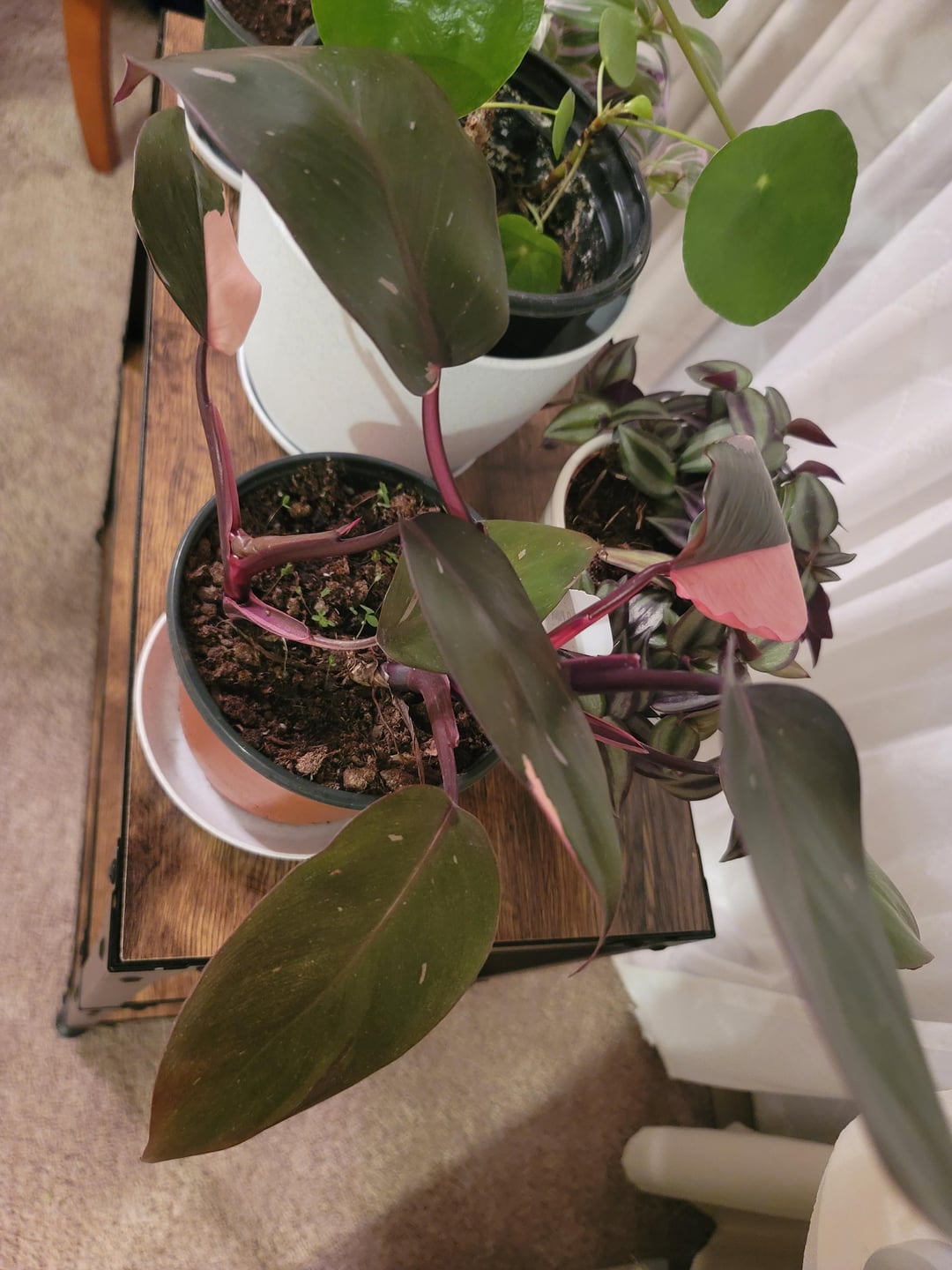 My girlfriend and I got the pink and white princess philodendrons pair ๐ the pink one is on my bedside table and the white one is on hers