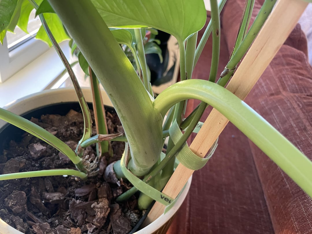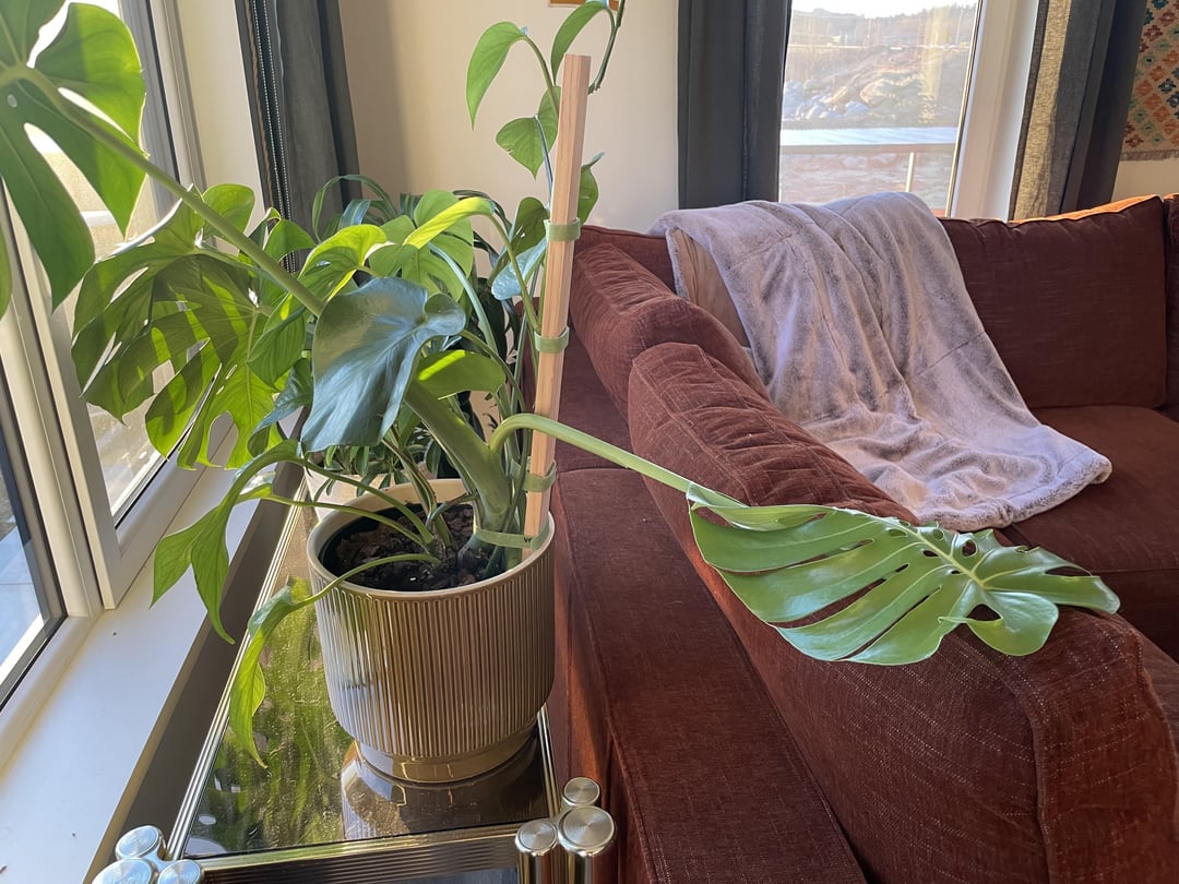 I just looked over and my monstera has one stem that decided to lean back over the sofa. This is a new development today. The stem is completely firm, just awkwardly bent!