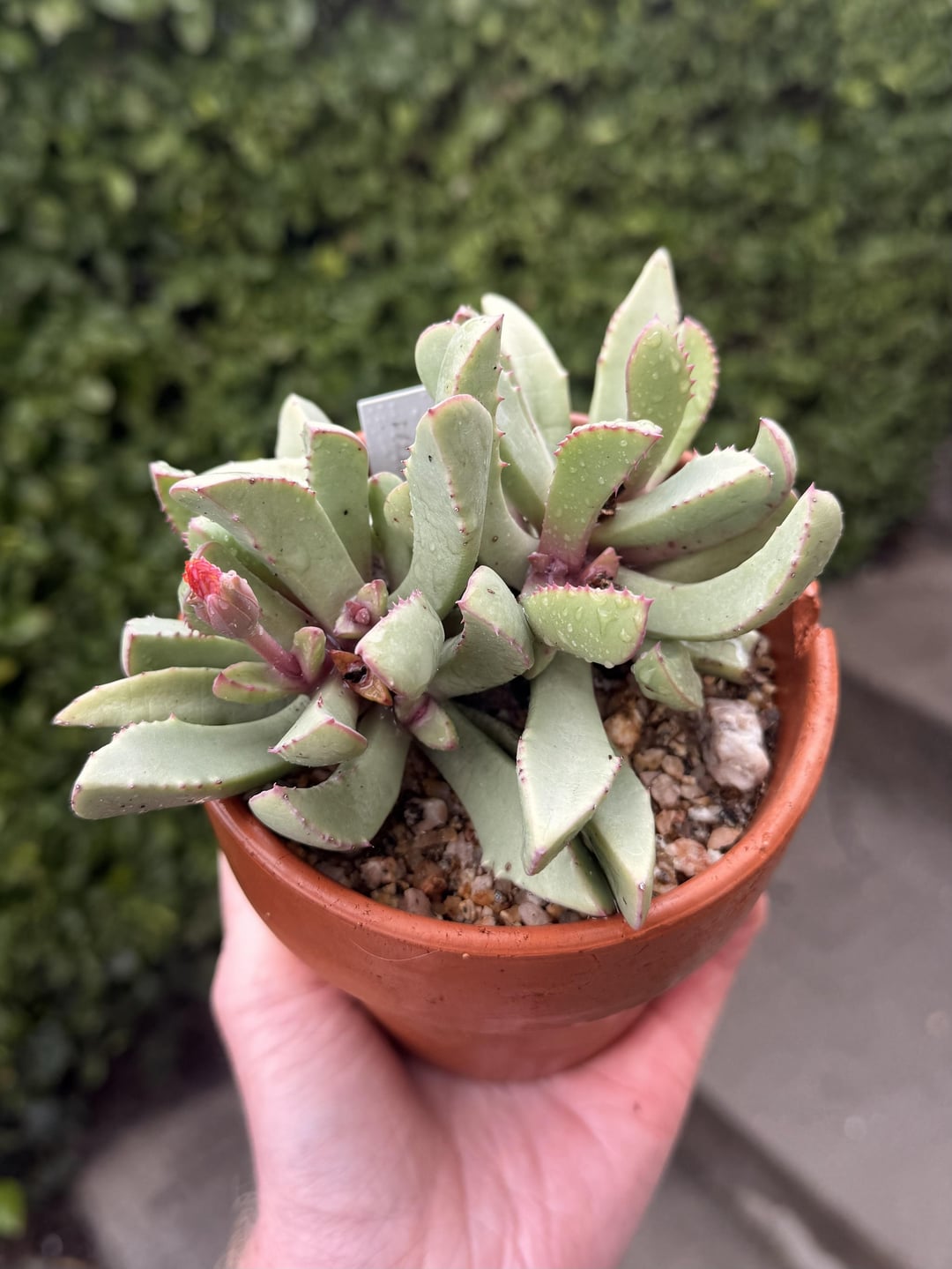 Bought this species on a whim about a year ago and so far it seems to grow vigorously; it started sending roots out of its terracotta pot after a few months. by DownTheHall Aizoaceaemesembs Write A CommentYou must be logged in to post a comment.