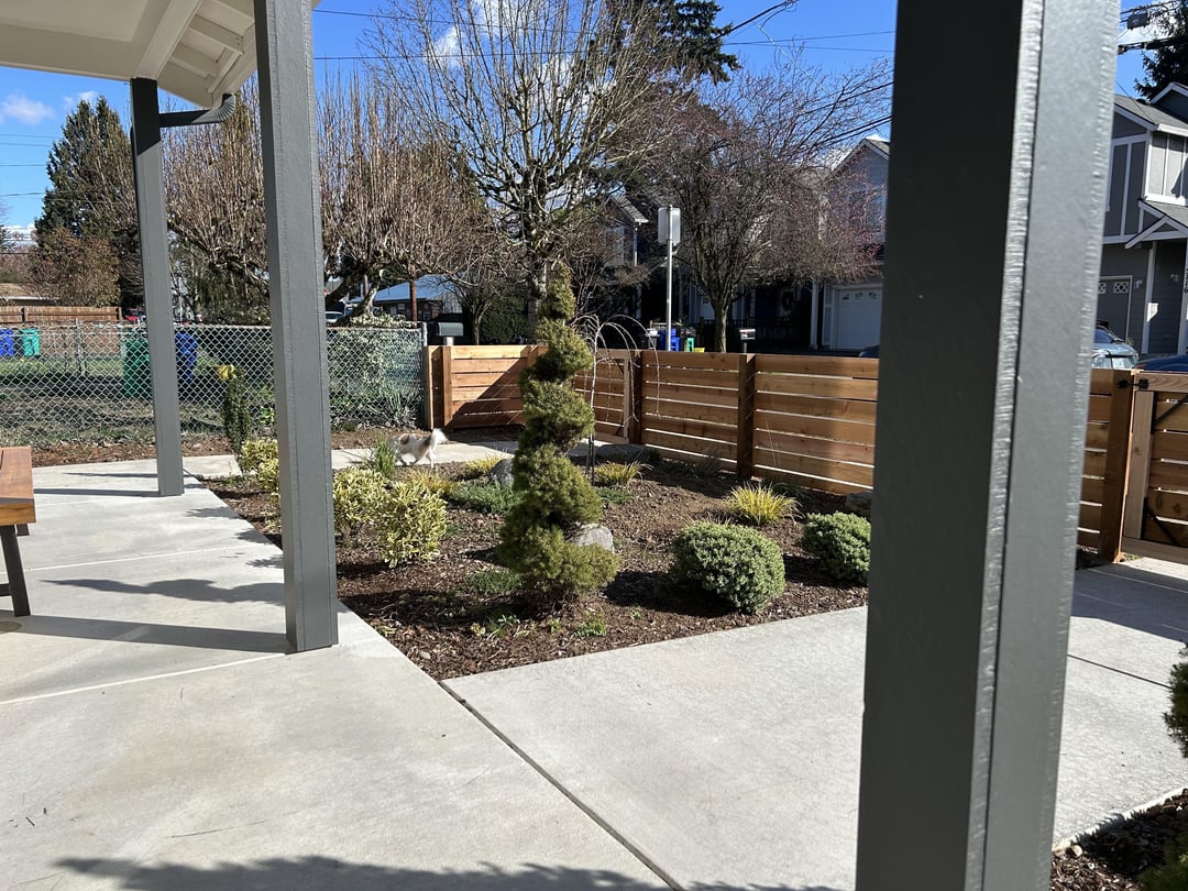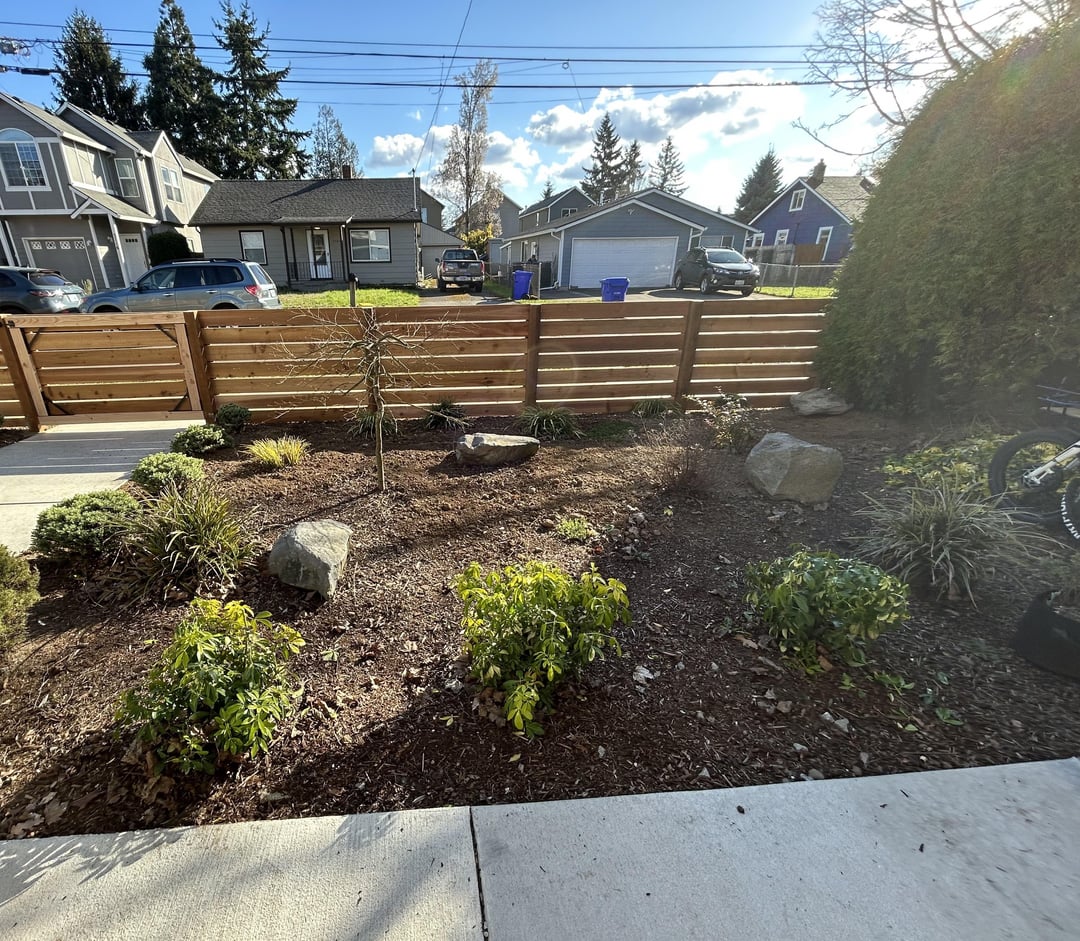 When we moved it is was just bark dust over the semi cleaned up construction debris area and the shrubs in the pic but smaller. There’s some decent soil here and there. But most of it is a mix of rocks, hard pan, concrete chunks, etc.