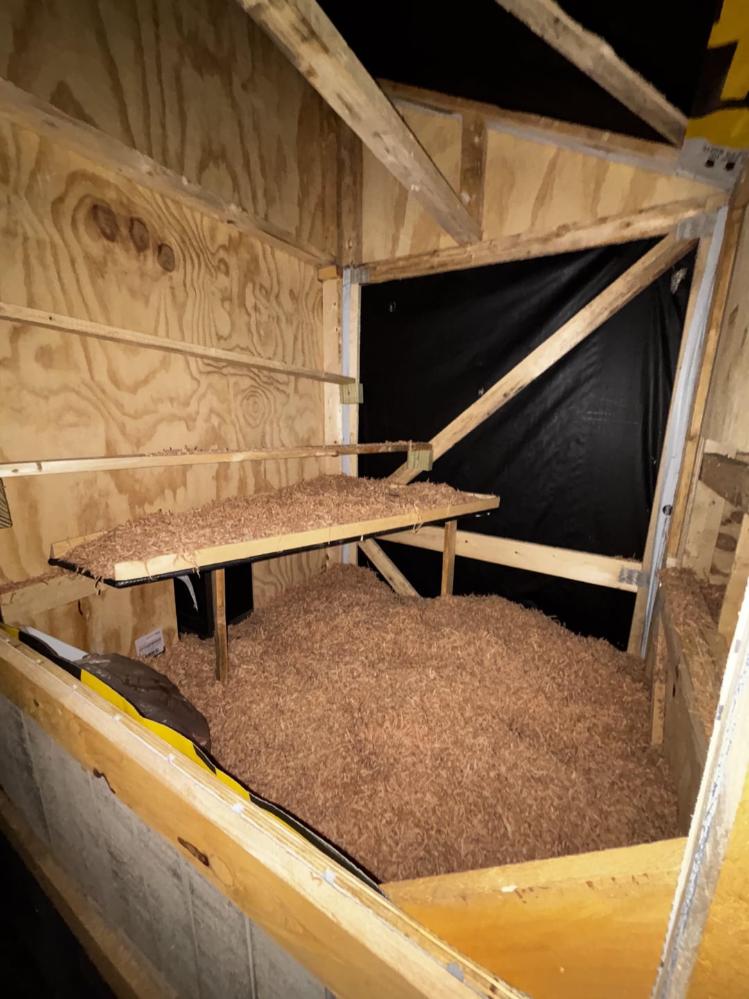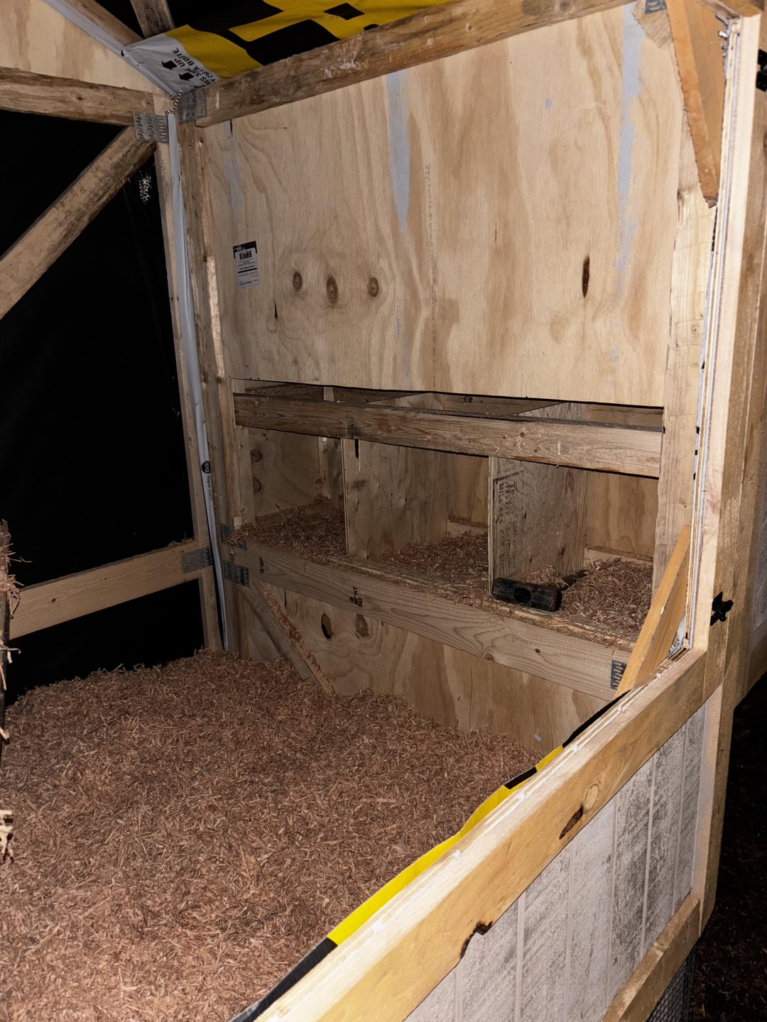 Hard to tell due to weird photo perspective, but those nest boxes look huge, you could probably get 5 across instead of 3. Mine (and most coops I’ve seen) are only like 10-12″ wide. When a nest box is too wide like this, it encourages other hens to try to use it at the same time. Or they’ll get aggressive to the laying hen just because she’s in a vulnerable position (chickens can be real jerks). A hen will feel more secure in a nest box that she can fully occupy so it fits only one hen at a time. Once a nest box becomes associated with getting pecked, etc she’ll start avoiding using it. Happy hens=productive hens.