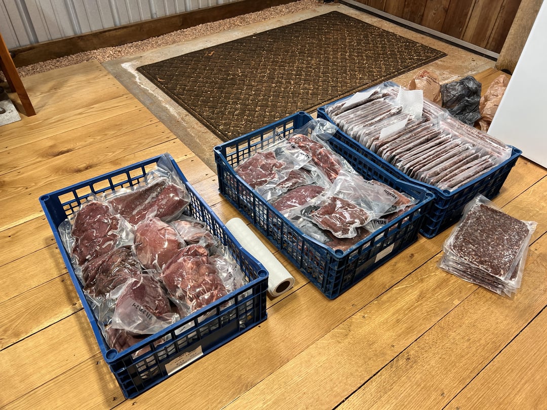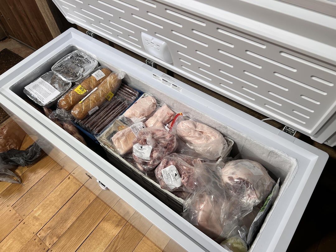 Cheap $2 recycled produce baskets make for decent deep freezer organization. Found on marketplace near Winston-Salem, NC if you are nearby and looking for some.