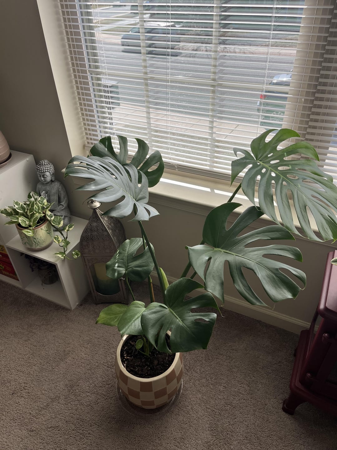 Winter months are typically miserable months for Monsteras because they’re tropical plants. Invest in UV lamps during winter the months when it’s less sunlight. Also be sure not to over water her. Other than that she looks amazing.