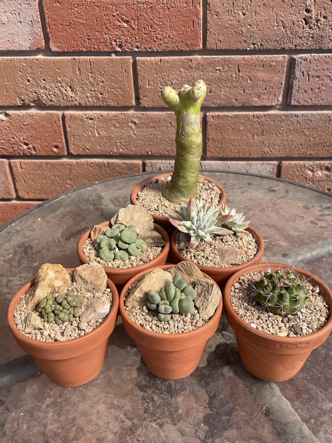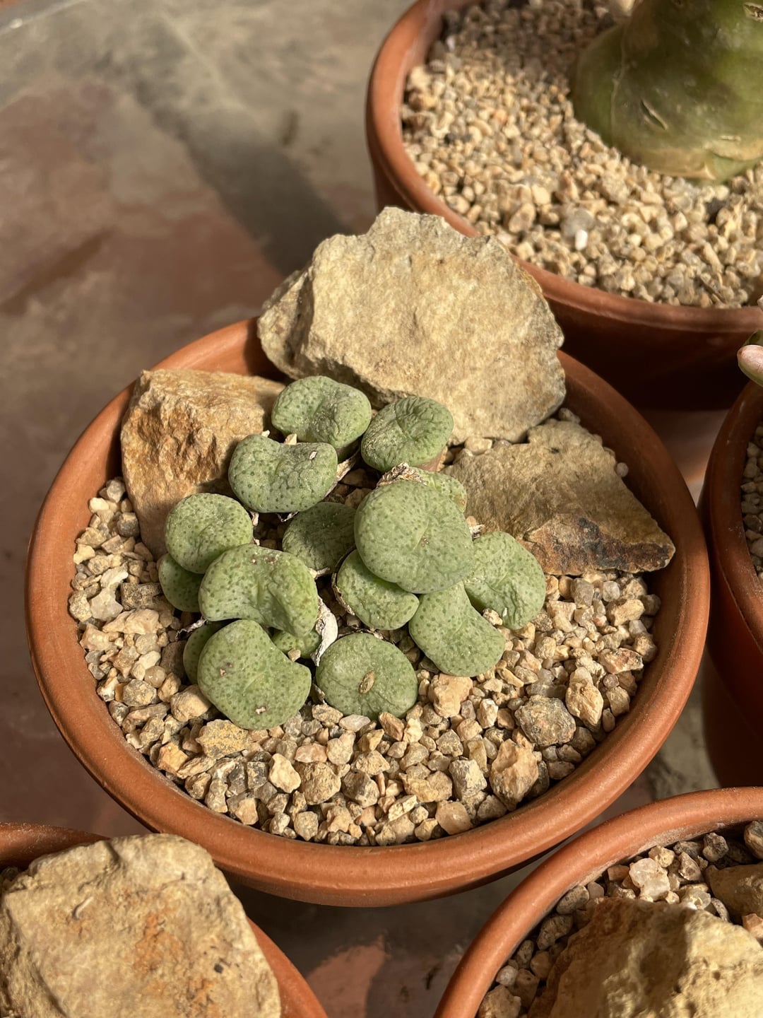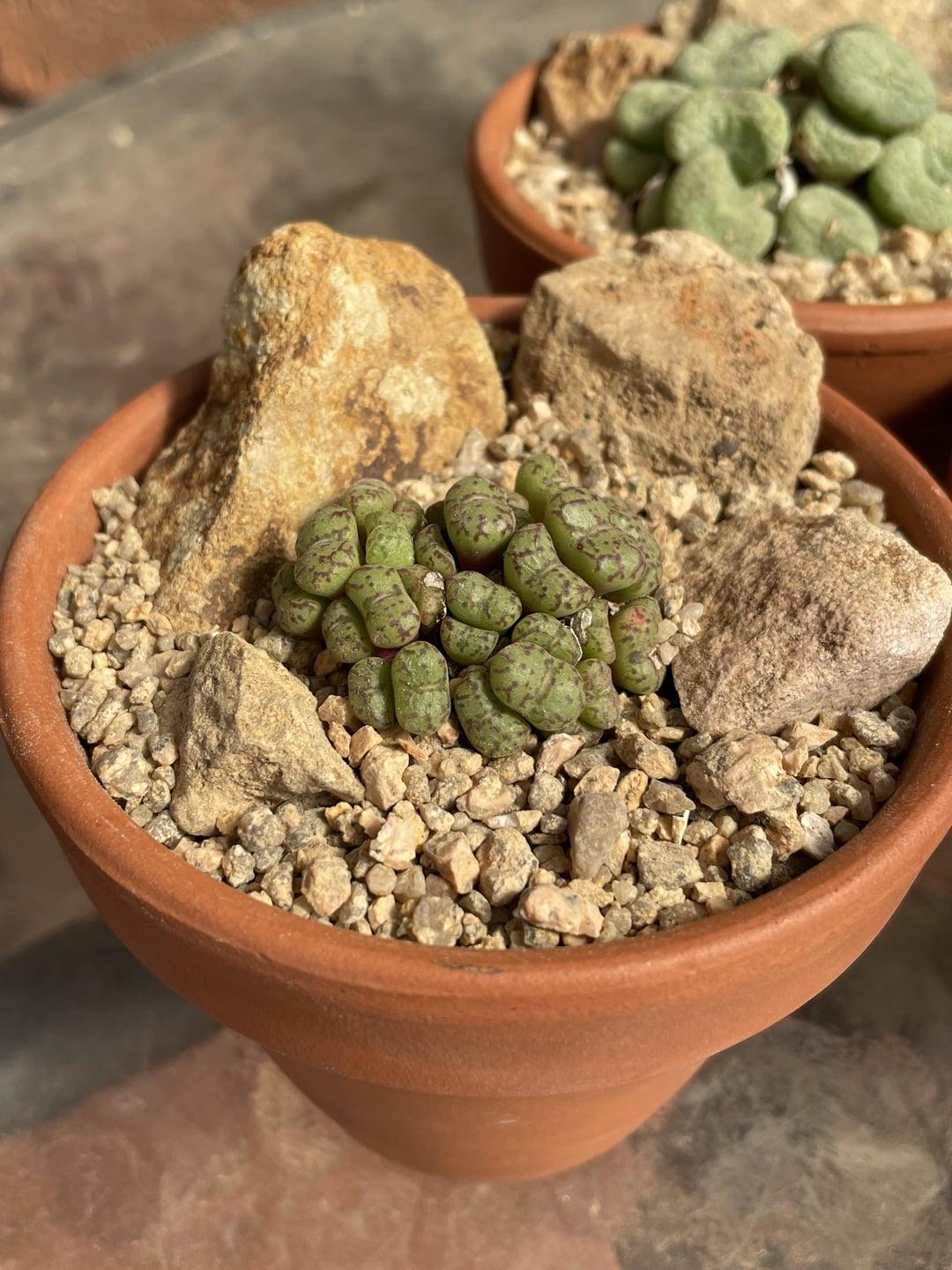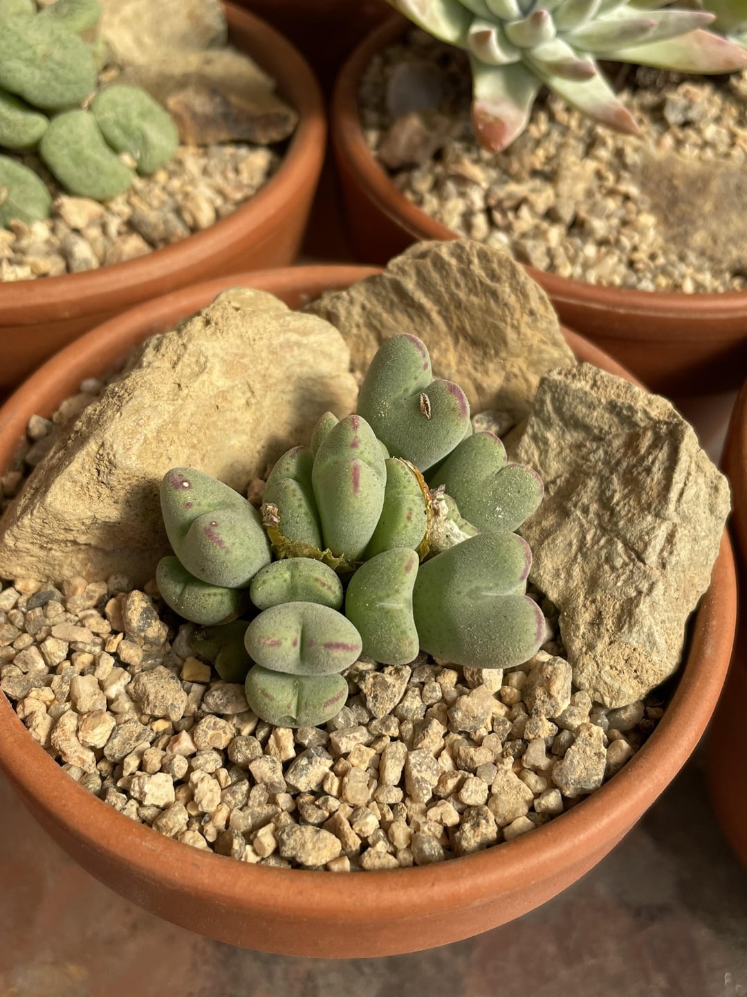 GoatLegRedux 8 months ago 1 and 4 both look like Conophytum obcordellum ssp. rolfii. 2 and 5 look like Conophytum meyeri (bilobum ssp meyeri) Not sure about the other ones. Edit: ooos, just noticed there’s only three, each with a before/after shot.