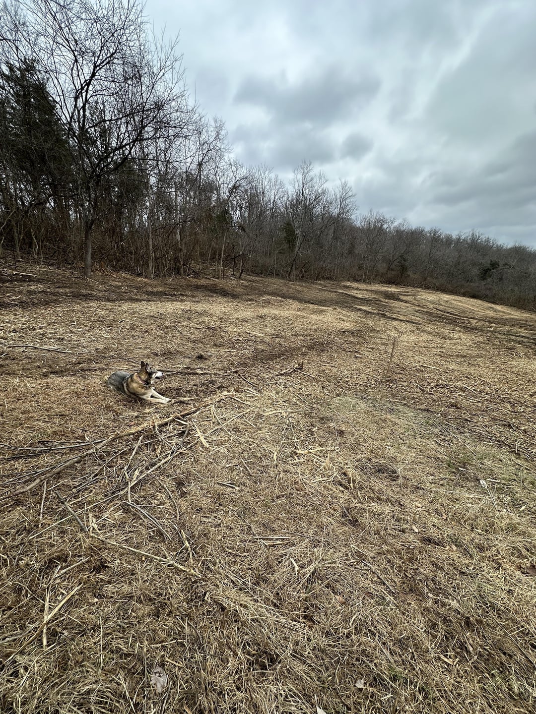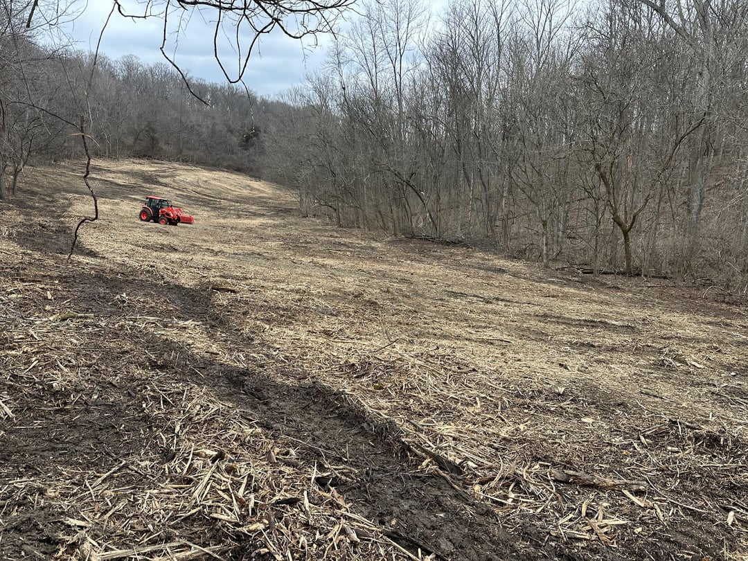 Essentially this area was overgrown with 5-10 yr old honeysuckle and other tree varieties. We used skid steers with mulchers to clear it out but still have large root systems underneath.