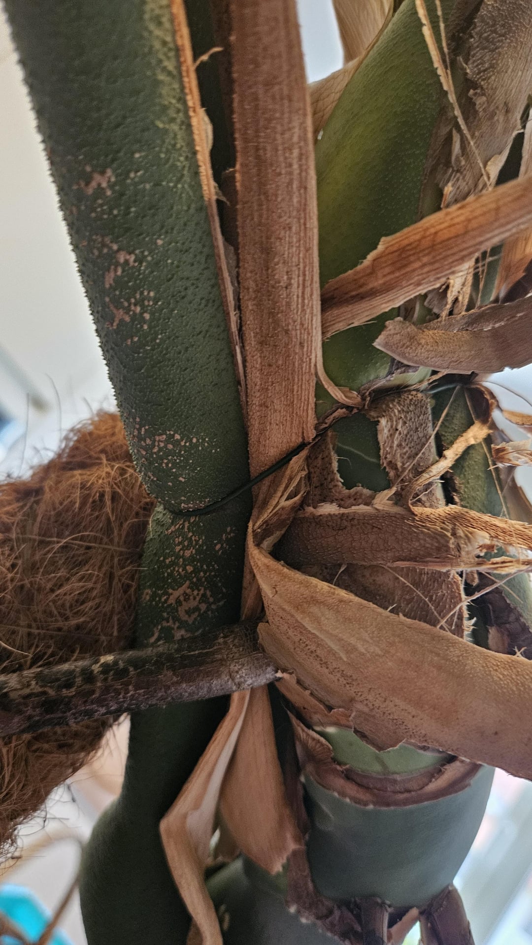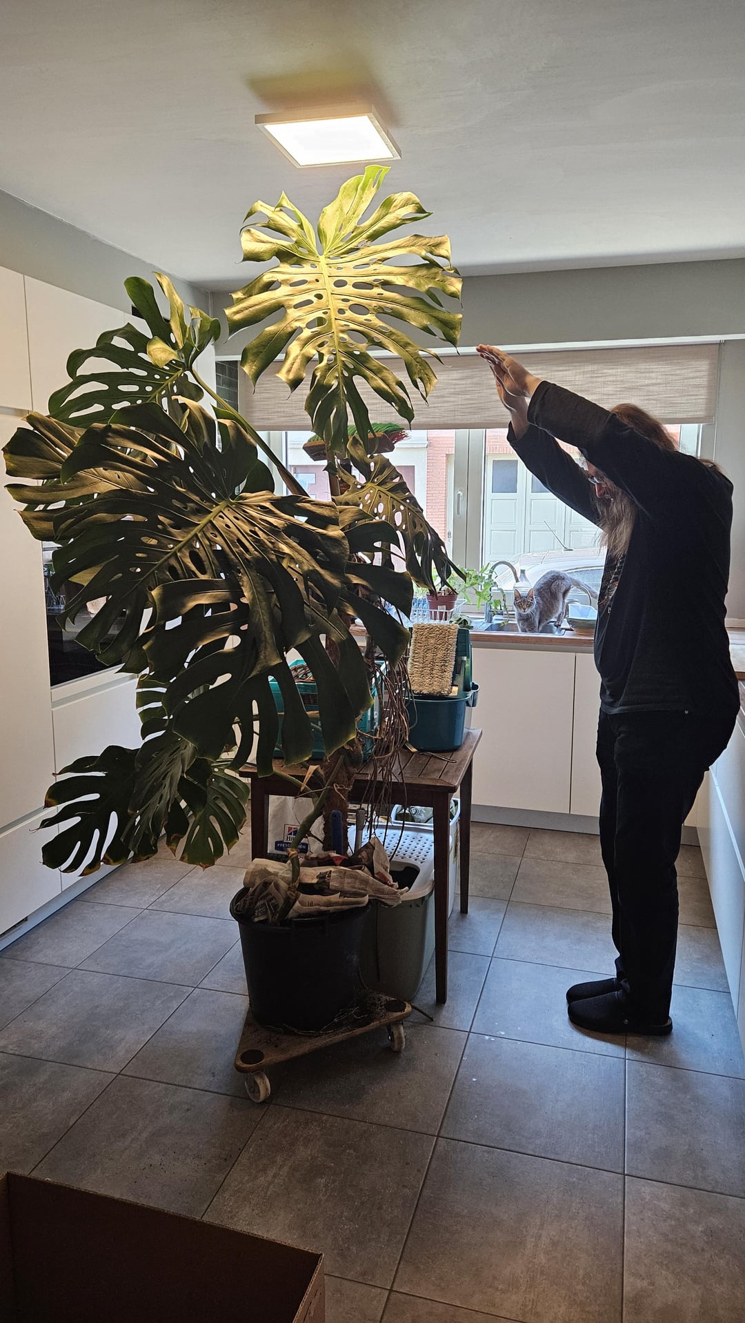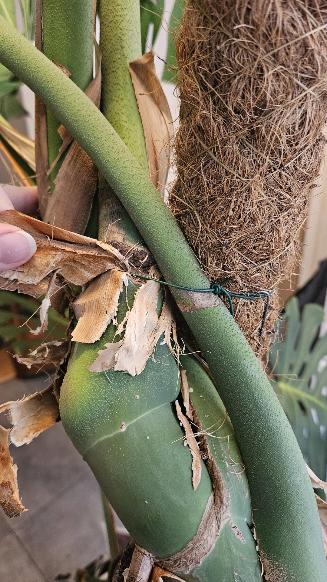 I recently came into the posession of a big monstera. It has 4 unhappy leaves at the bottom, a lot of places along the way leaves have been cut off and a very heslthy top with aerial roots.