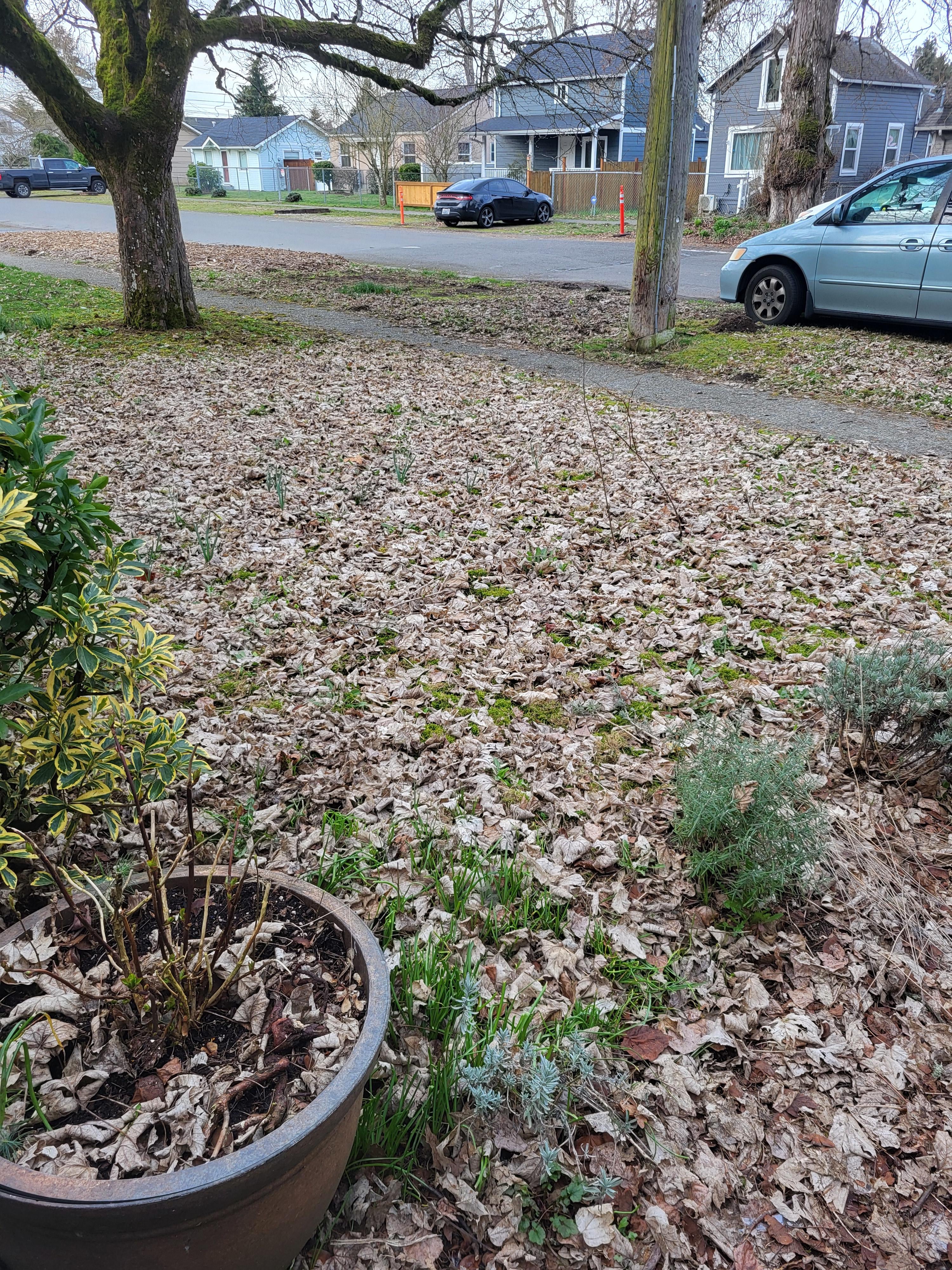 This is my lawn. It ends where the leaves stop. As you can see, I had my maple tree do most of my work for me last fall.