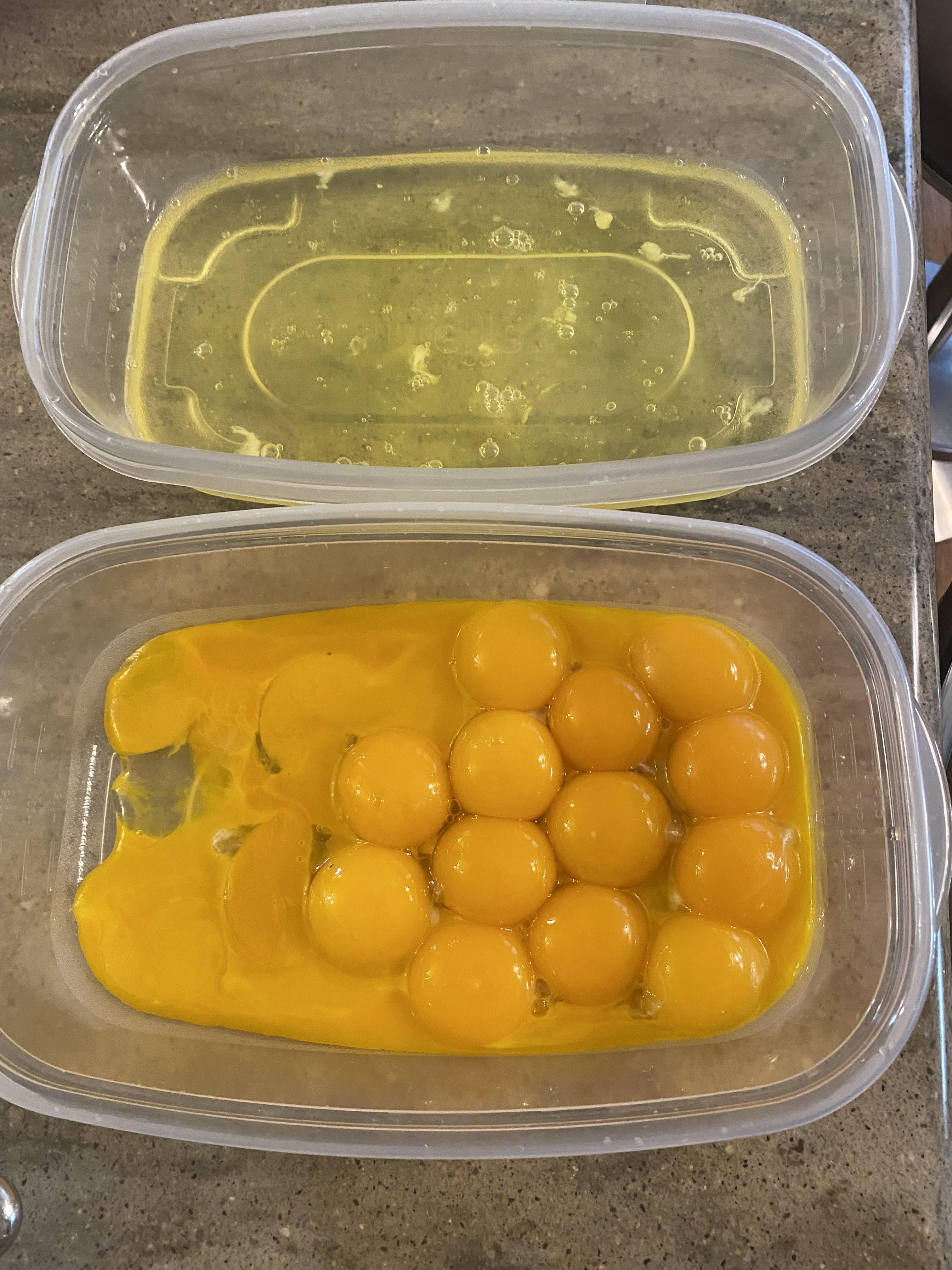 By weight, the yolks come in at “large” on average, but the whites come in at “medium.” Not a big deal if you’re making an omelette, but more important for merengues and other baked goods.