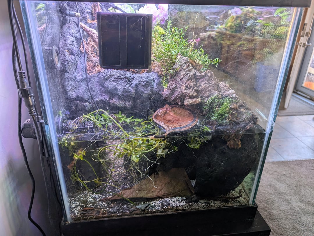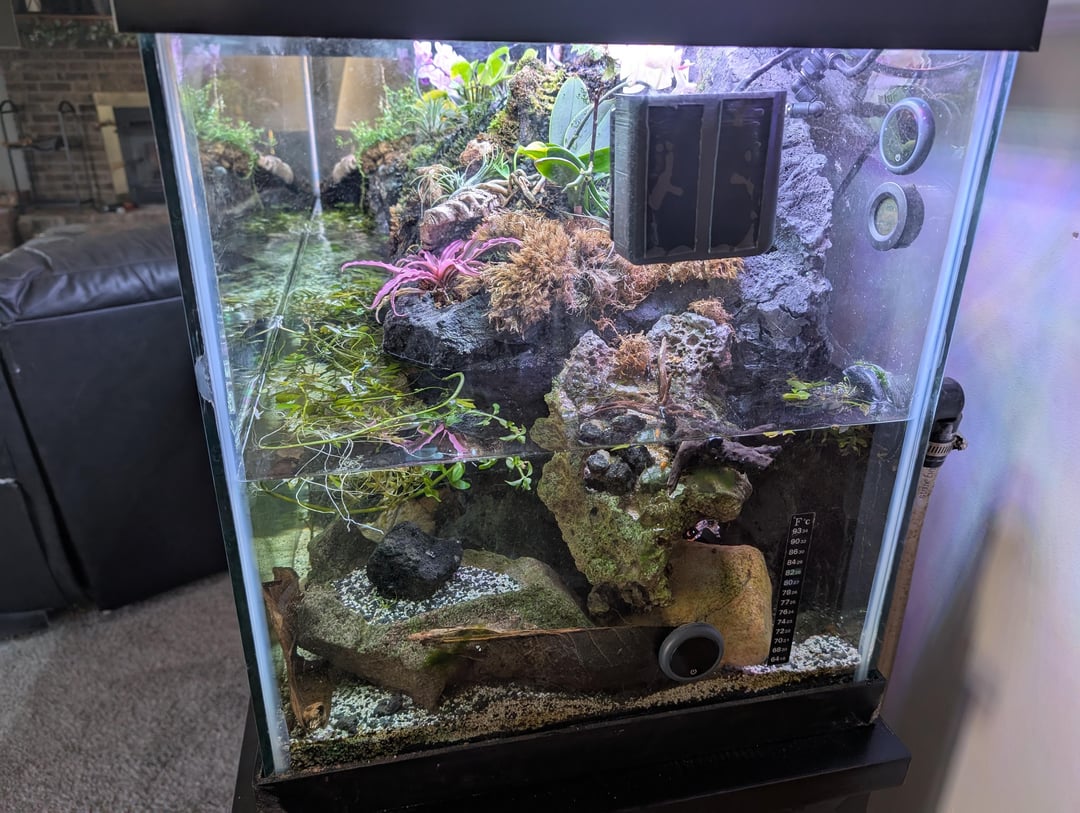 I'd like to add some semi-aquatic animals that would thrive in this kind of setup. I'd love to have some frogs. I initially wanted to have dart frogs but I know this setup is not right for them.
