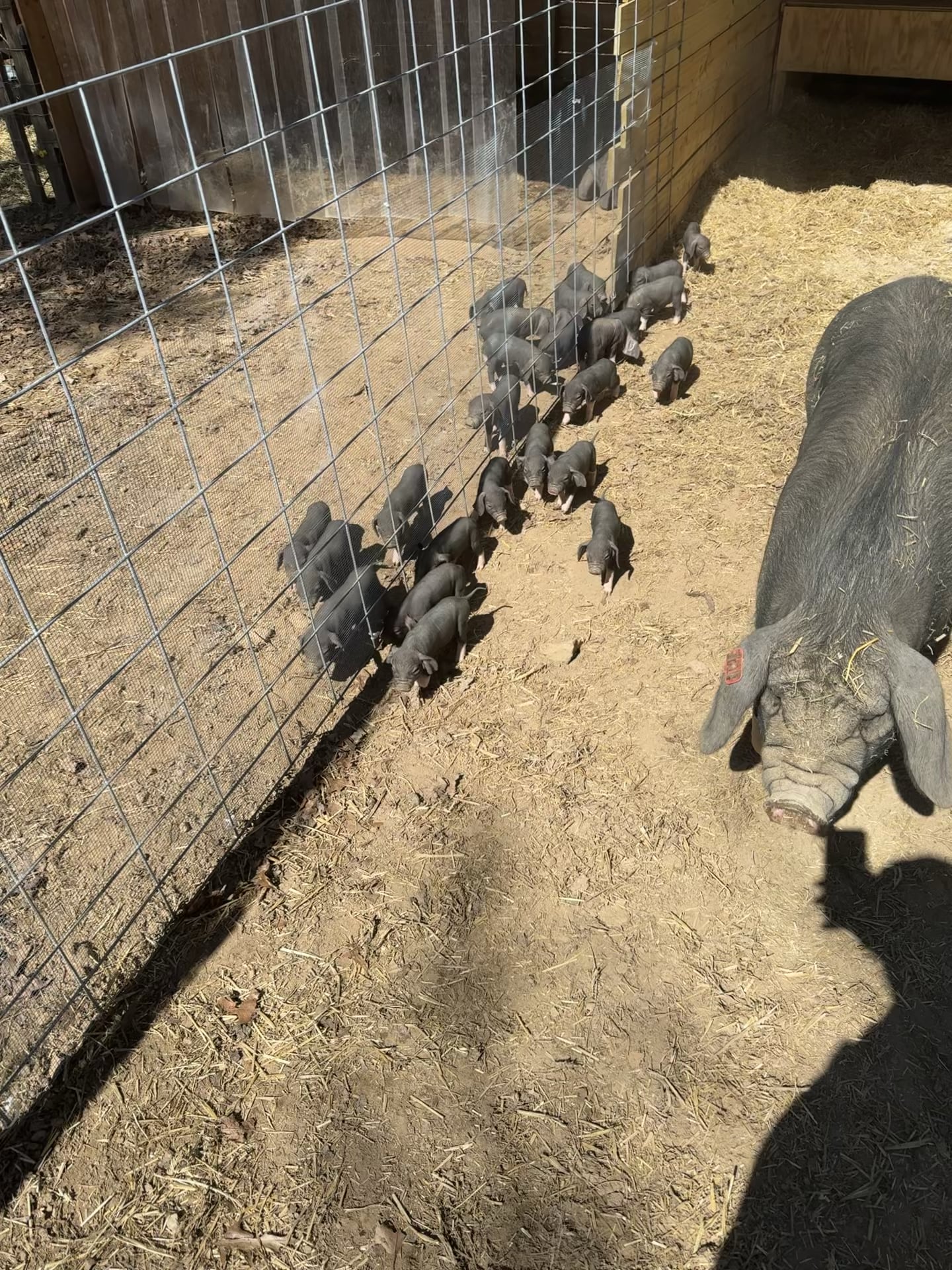 Meishans are known for their incredible mothering ability, and this is proof. 27 live births between both sows, and every single piglet is doing great. Loving this breed more every day!