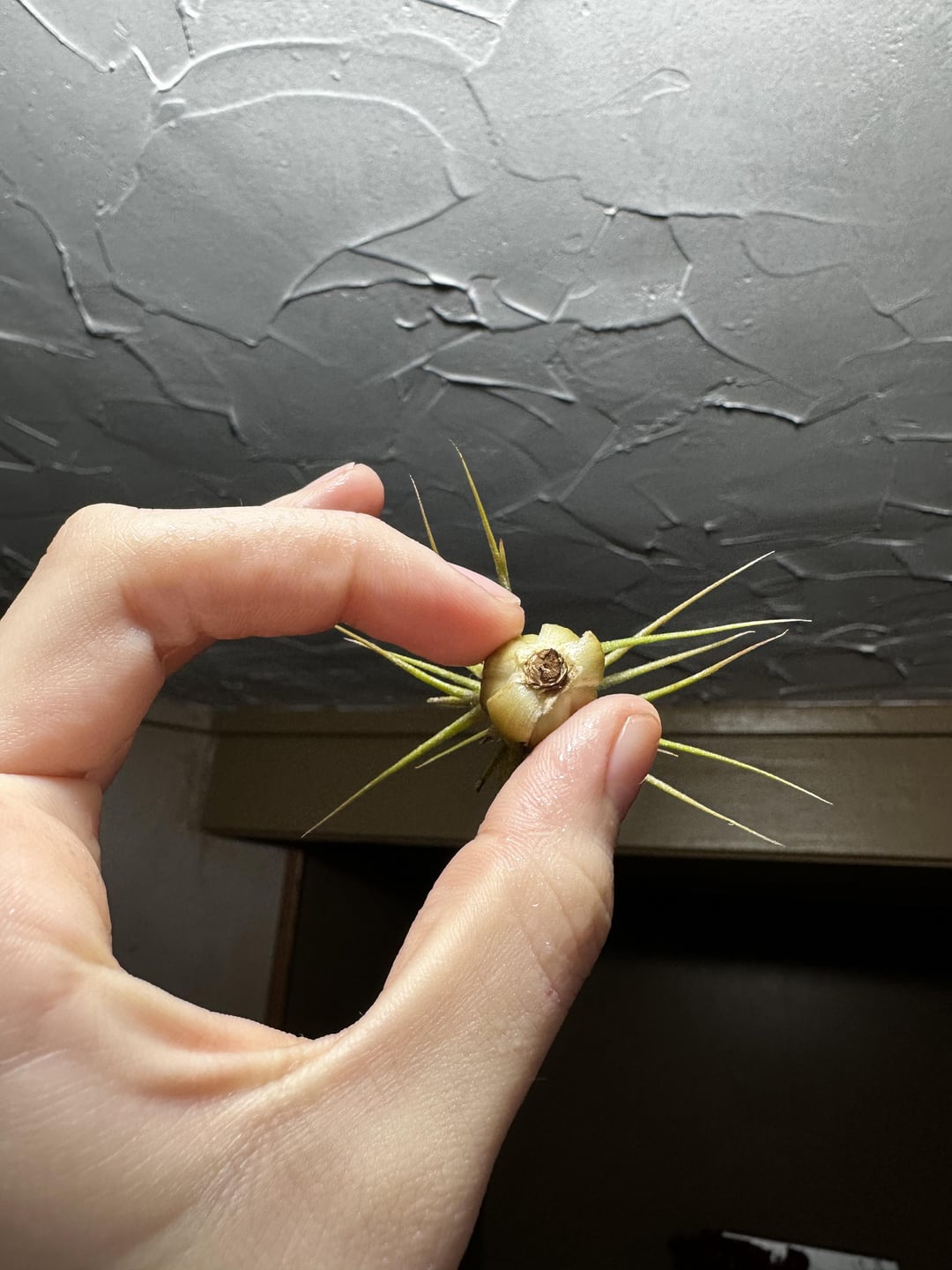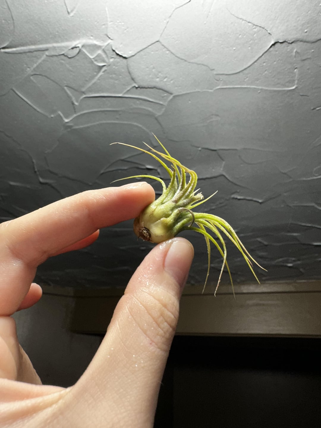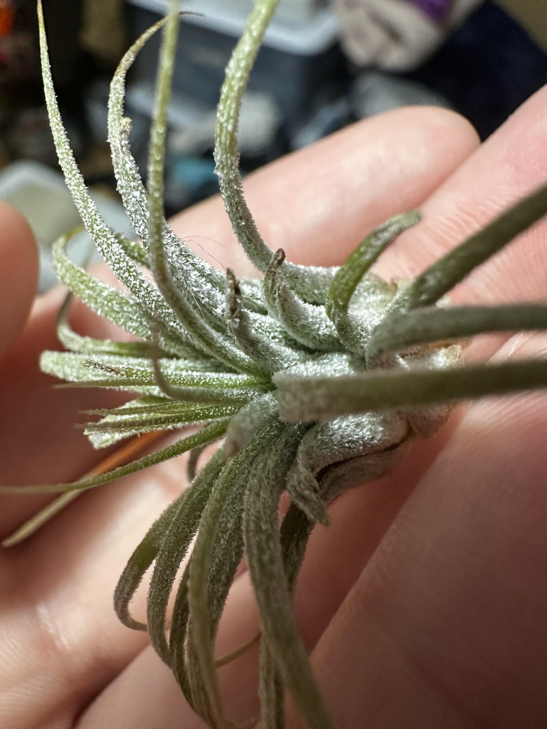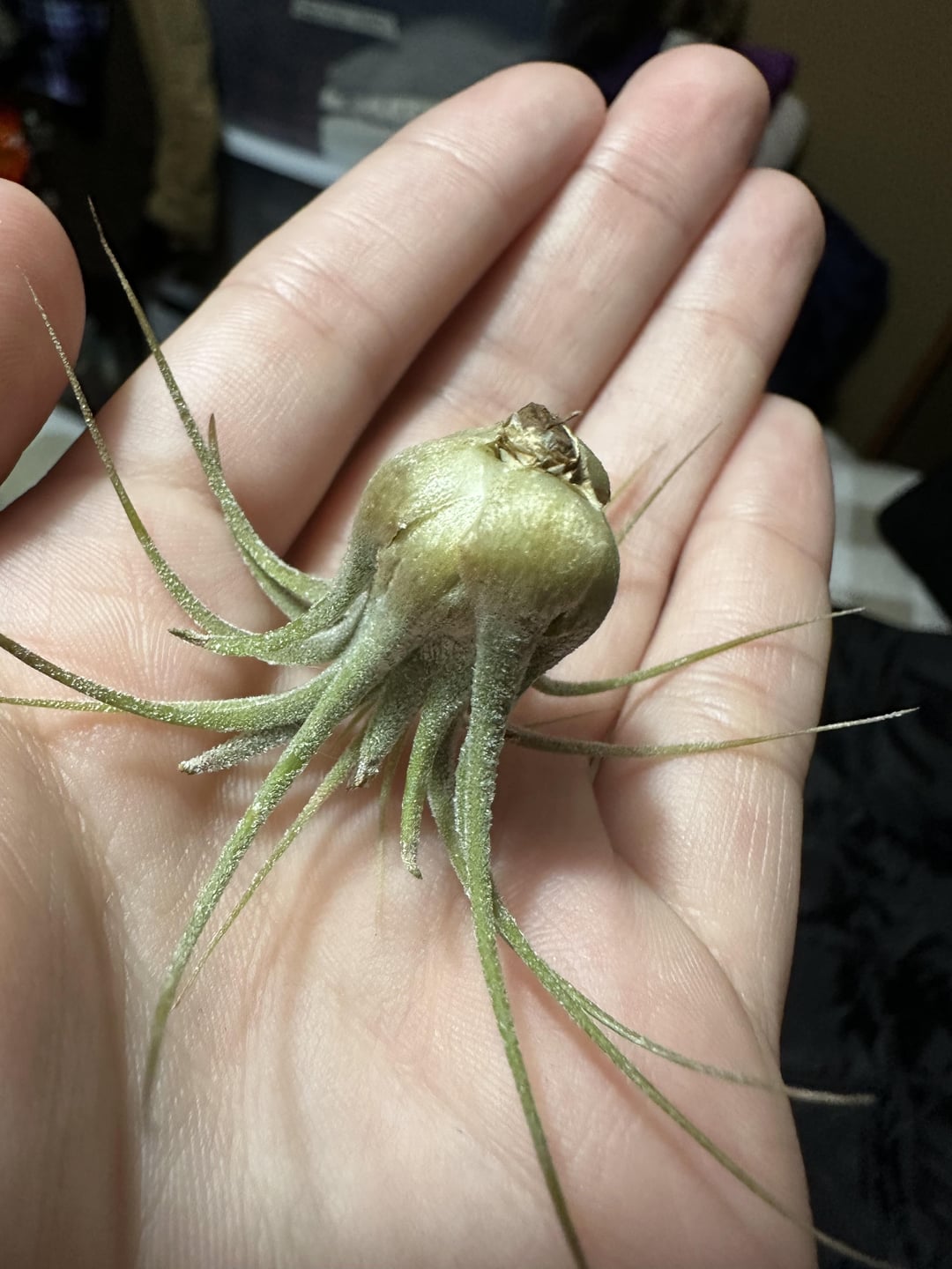 Momma got me this lovely little air plant for Christmas! Ive soaked it twice since I’ve had it, then I just mist it every morning (if I remember) or at night if I forgot in the morning. I let air dry upside down (all day while at work OR all night when misted at night) but there’s a dehumidifier in my room that my mom put in, and Idk if that’s a good thing or bad when having plants in a little bedroom. ANYWAY how’s it doing ??? Am I okay to keep misting like I do ?? I’ve noticed some growth from the middle, and I want to assume the loose leaves on the outer part is just due to the new growth process and the dying off of old leaves ? What should I change about my process ?
