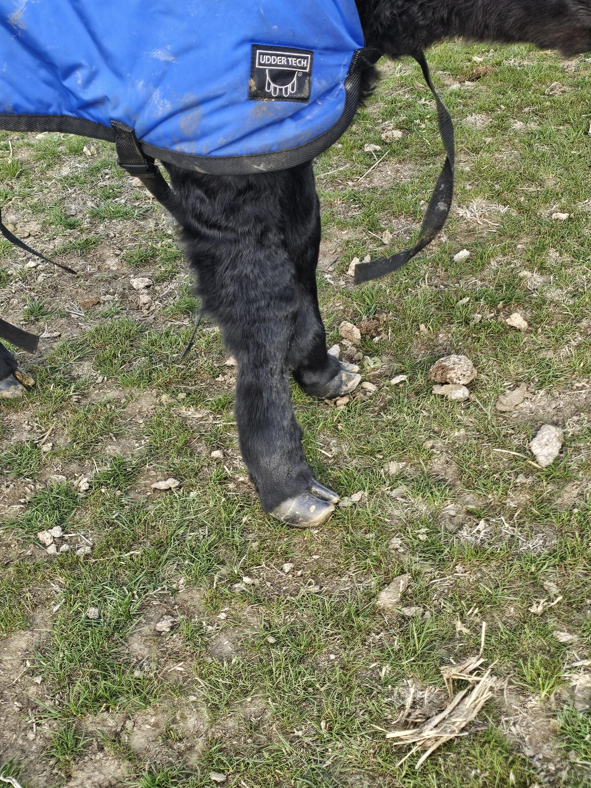 Looking for a little advice. My bullcalf was born just yesterday (3/9/25) and his the way his front legs/hooves are bending doesn’t look normal to me. Looks like he’s rocked back to far on his heels.