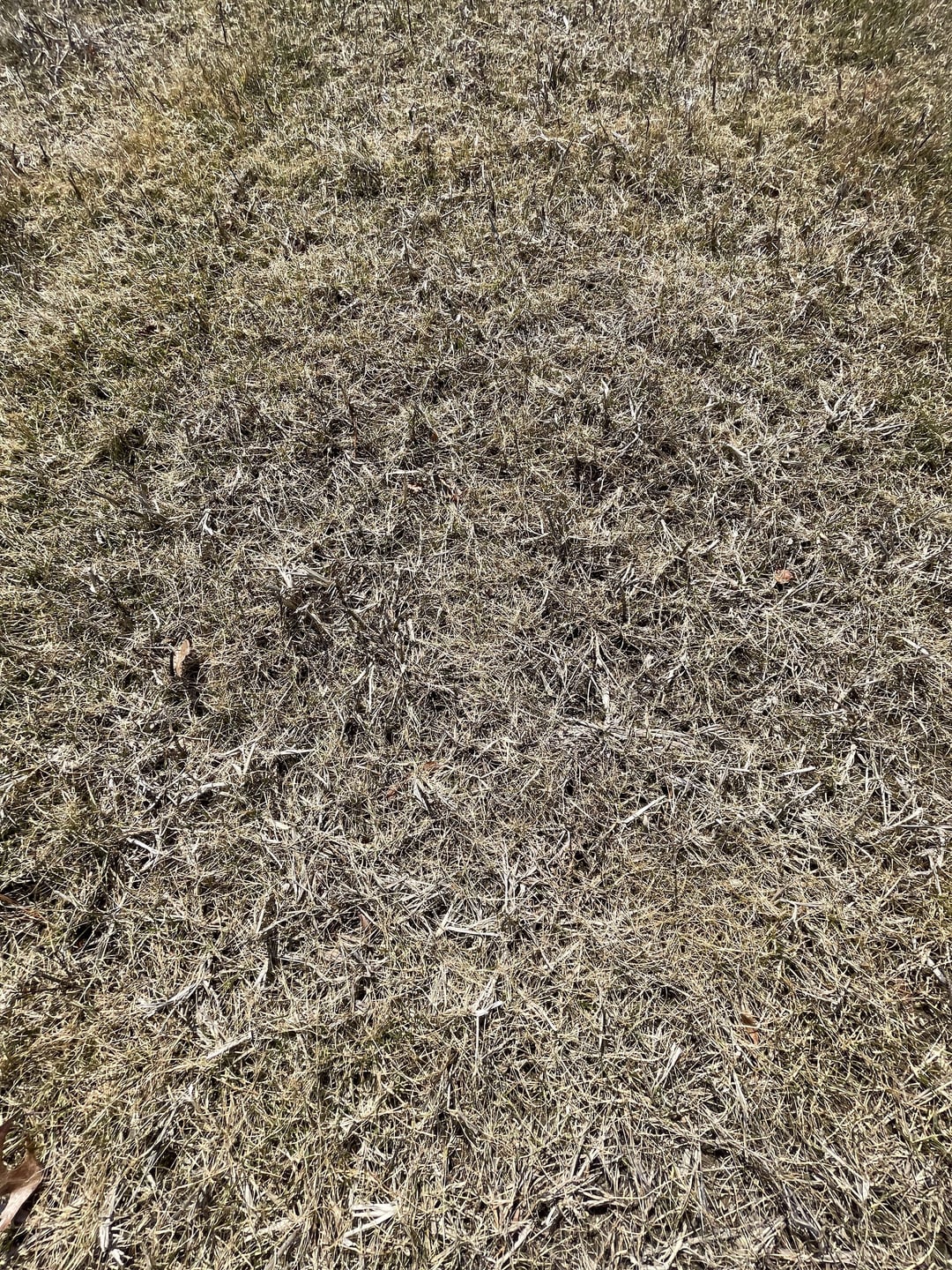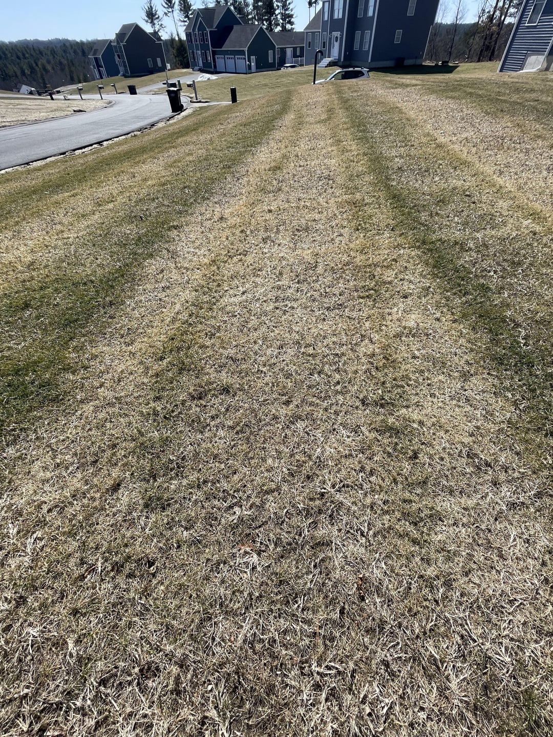 No. It needs to just be raked out. You have snow mold fungus. That’s the white-ish tint in some areas.