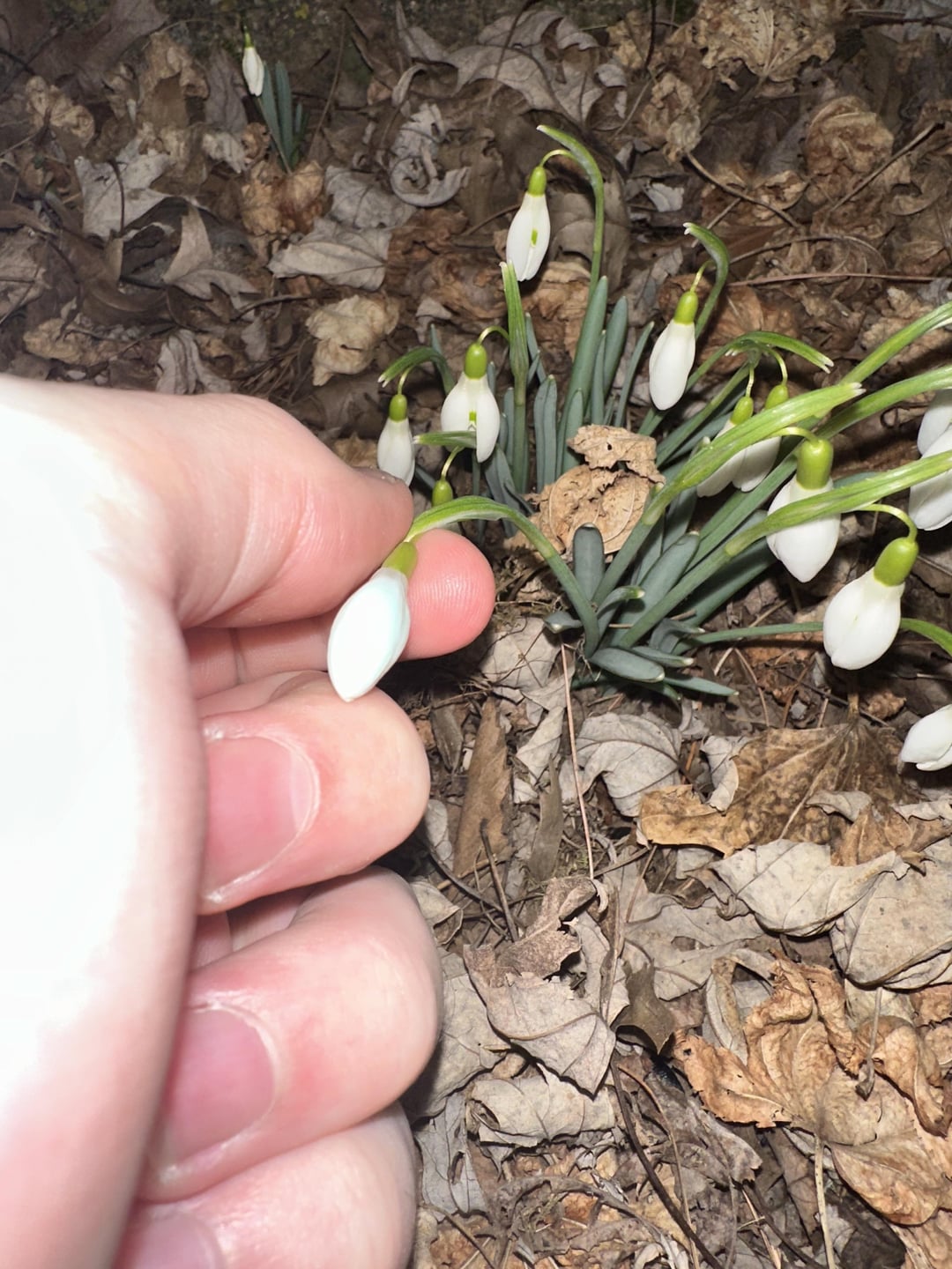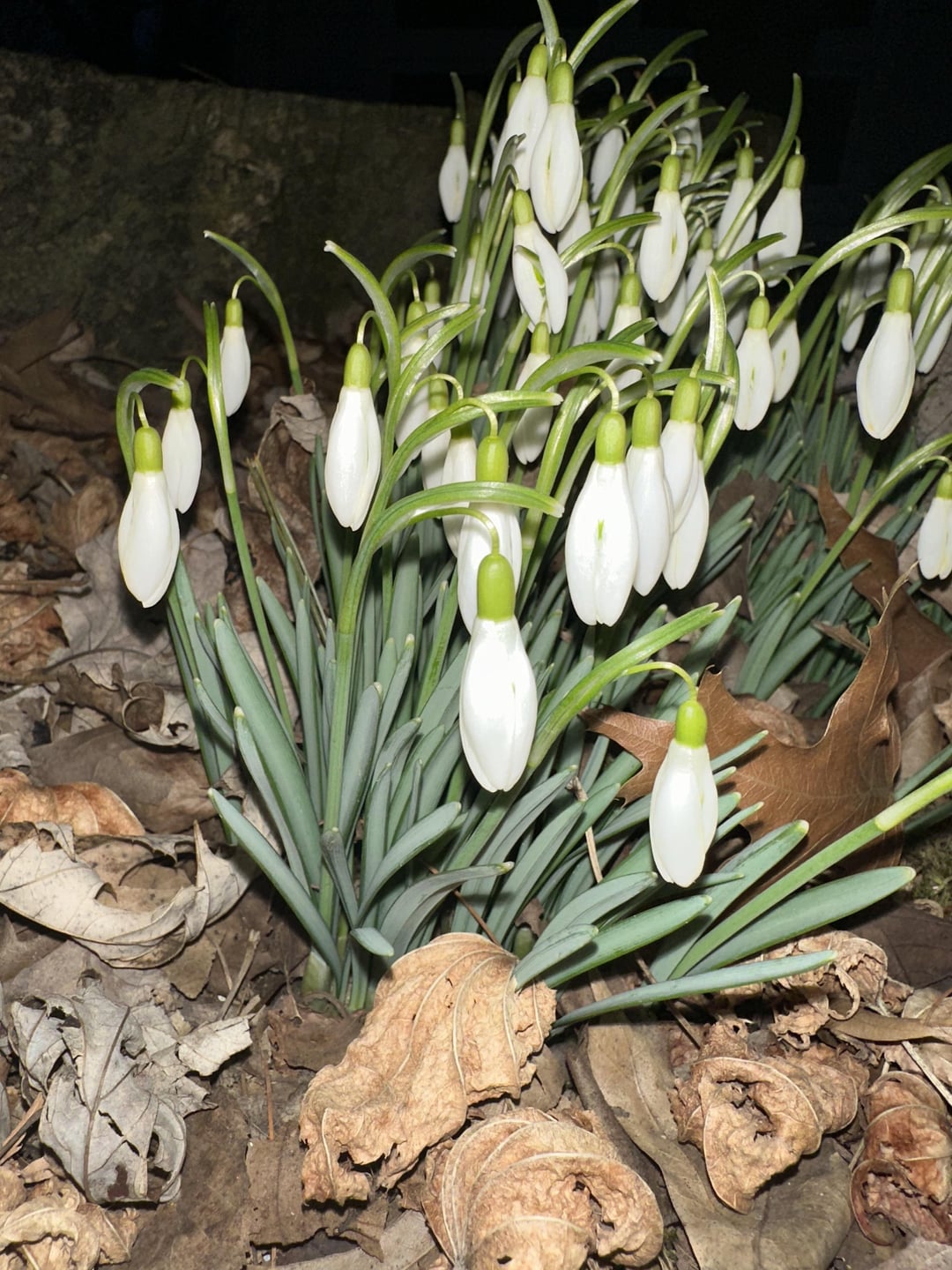 In Switzerland a related species (*Galanthus nivalis*) is called Schneeglöckli, which translates as little snow bells. I love them ❤️
