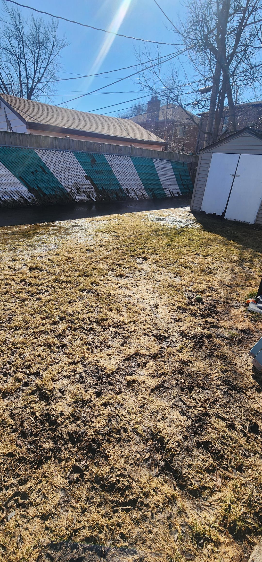Where do I start from here? Staying at parents house for a bit and wanted to take care of this to keep my mind busy, so I need advice(step by step if could coz im a noob). Do I rent an aerator from home depot to take care of that pool of water? Thanks!
