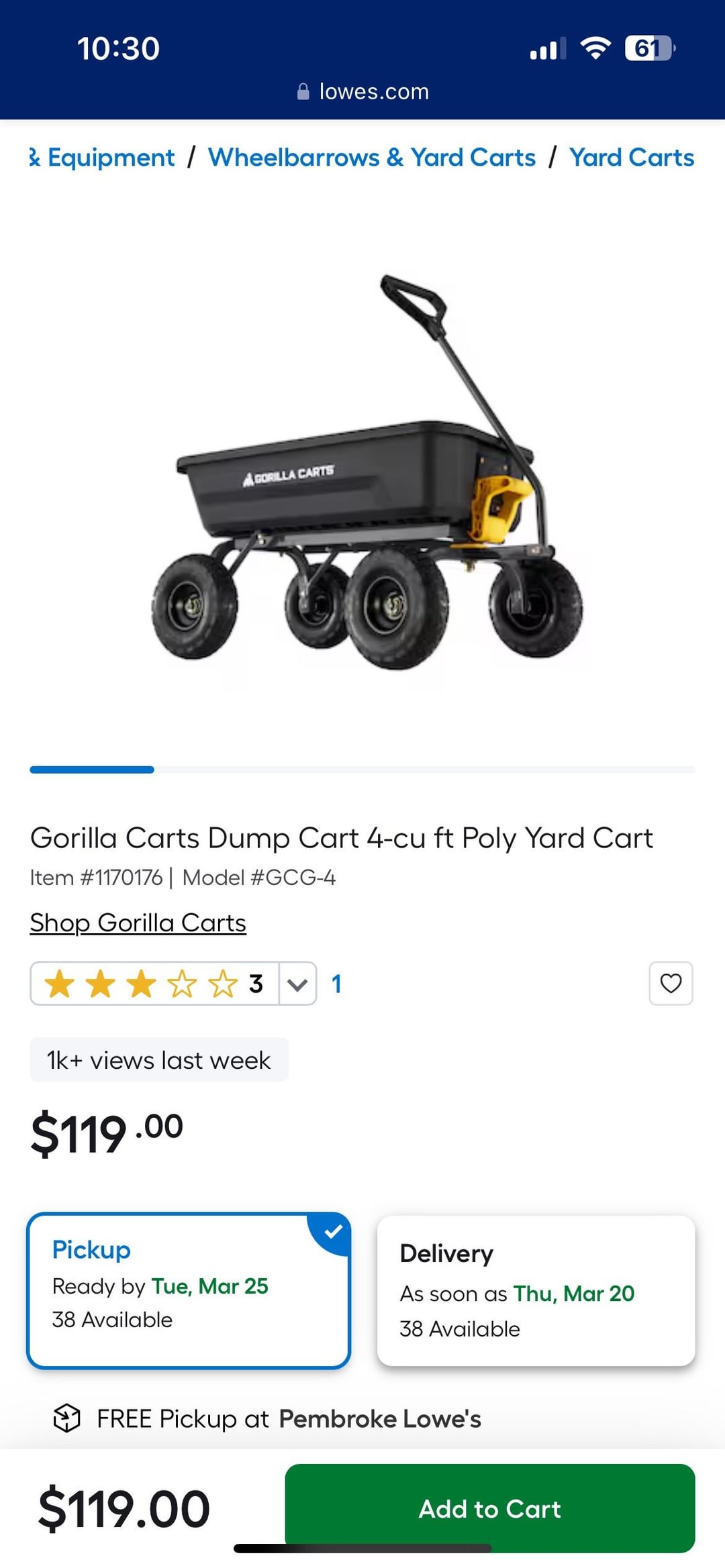 Something I can actually respond to. I own the gorilla dump cart in 4cu size and 12 cu size I keep at one of my rental houses and it’s one of the best outdoor things I’ve bought both from Facebook.