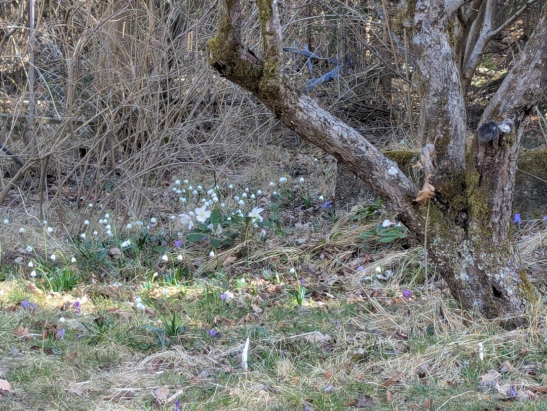 Image is of our backyard now (March) with lots of snowdrops and crocus in the lawn.