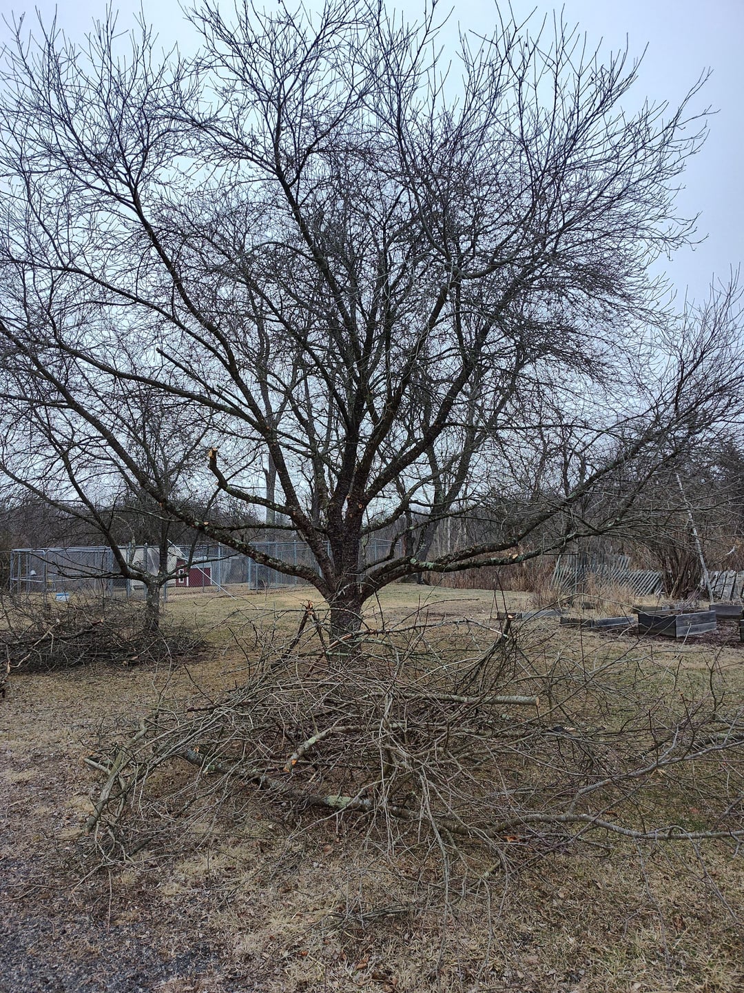 I'm trying to reclaim two apple and one peach tree that we let get too overgrown. I pruned a bunch of dead and water shoots off of them yesterday but am wondering how far I can go to get them to manageable sizes. They all produced fruit pretty good the last few years. The trees are about 20 years old.