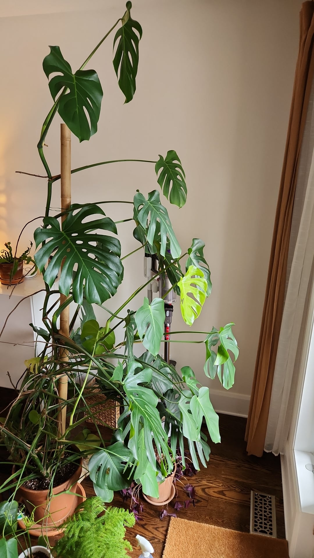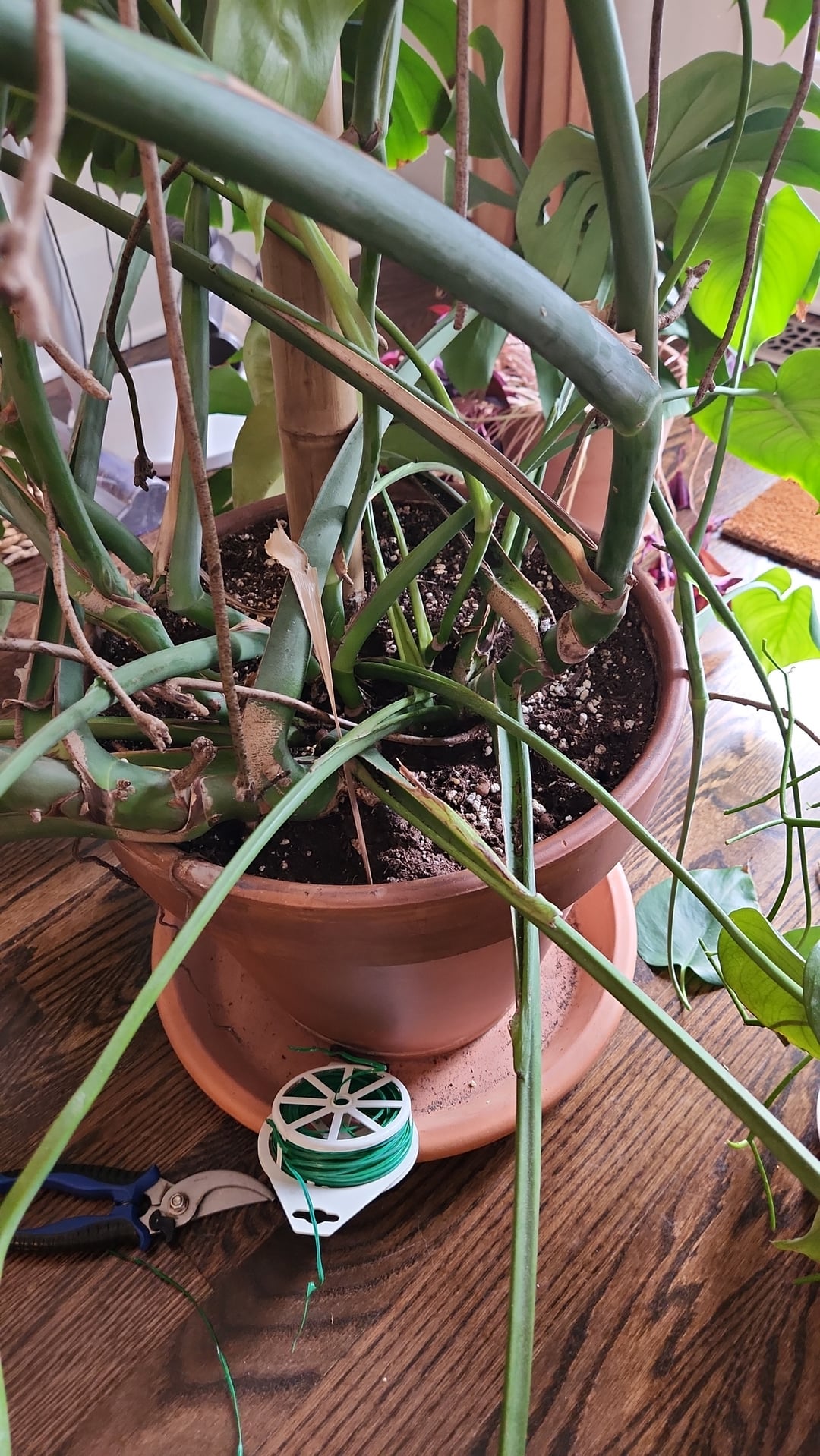 Hi all, this monster needs repotting AND pruning this spring. Is it okay to do both at the same time or should I significantly space both operations? It's multiple plants in one pot (too late to separate) and I'm thinking of cutting each by 1/3 approximately.