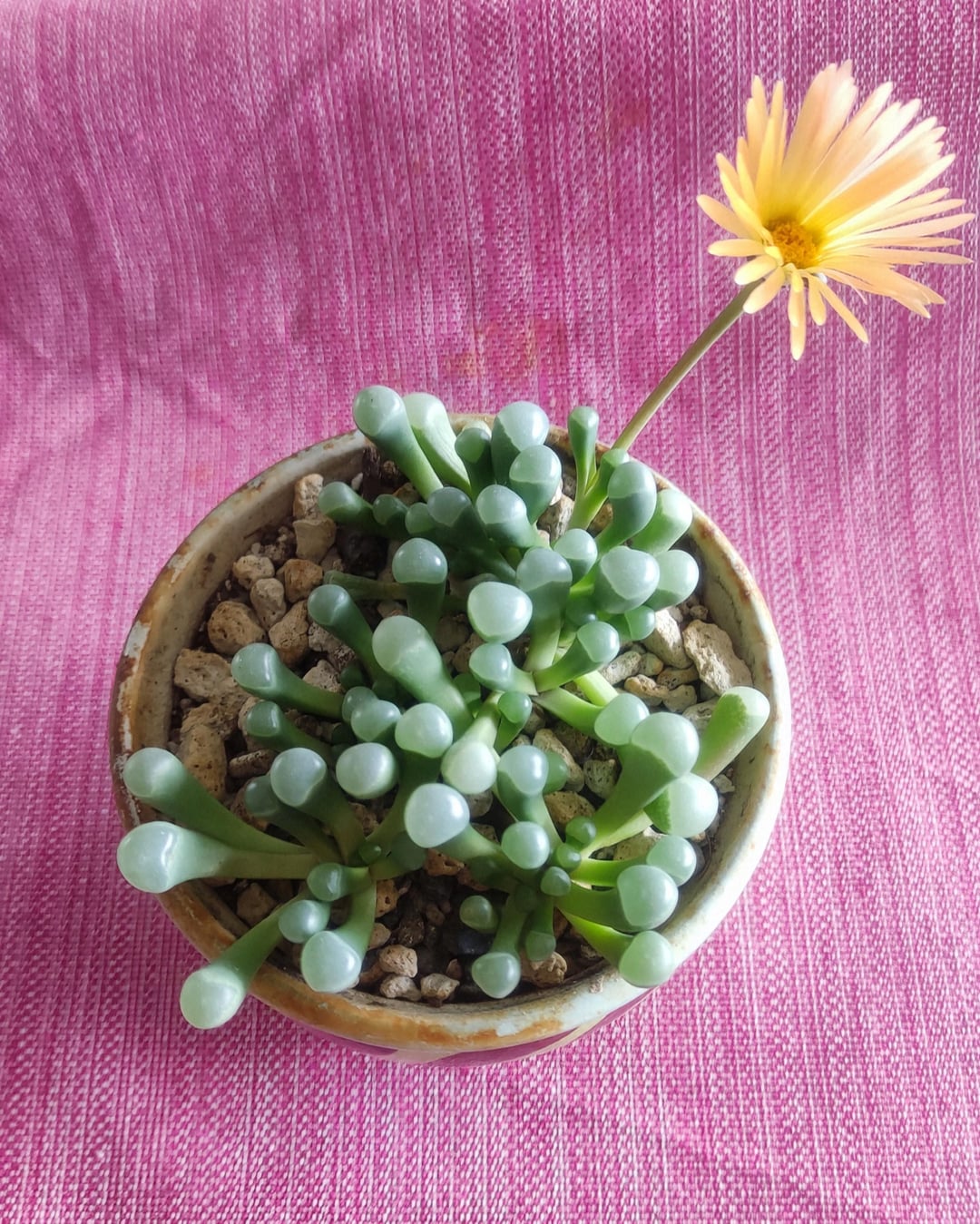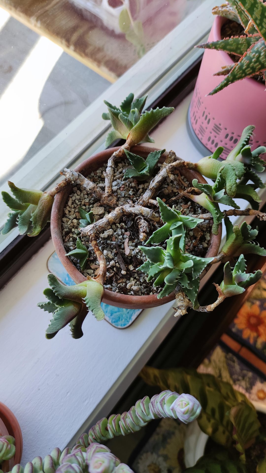 Corpuscularia lehmanii – very dramatic, wants quite a lot of water. I'd like to balance it out but I've only rooted one cutting successfully out of maybe five.